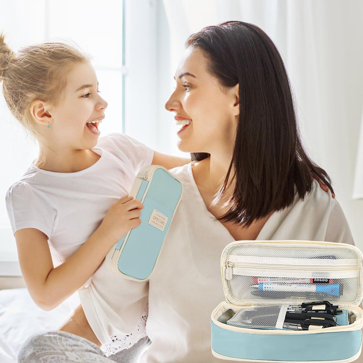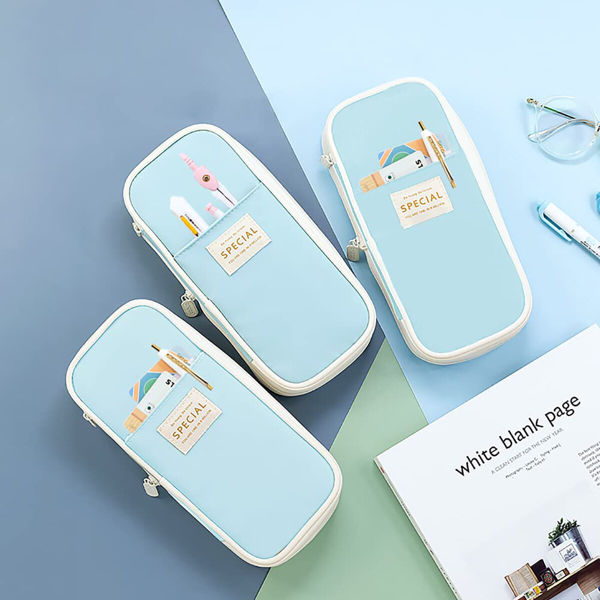 Купить Пенал школьный, органайзер для канцелярии, расширяемый размер, цвет голубой