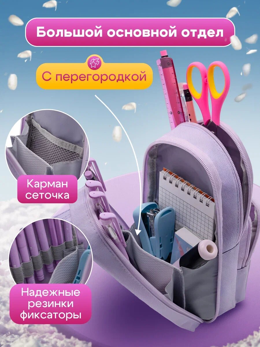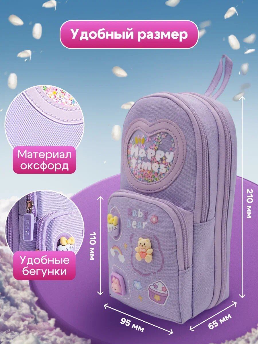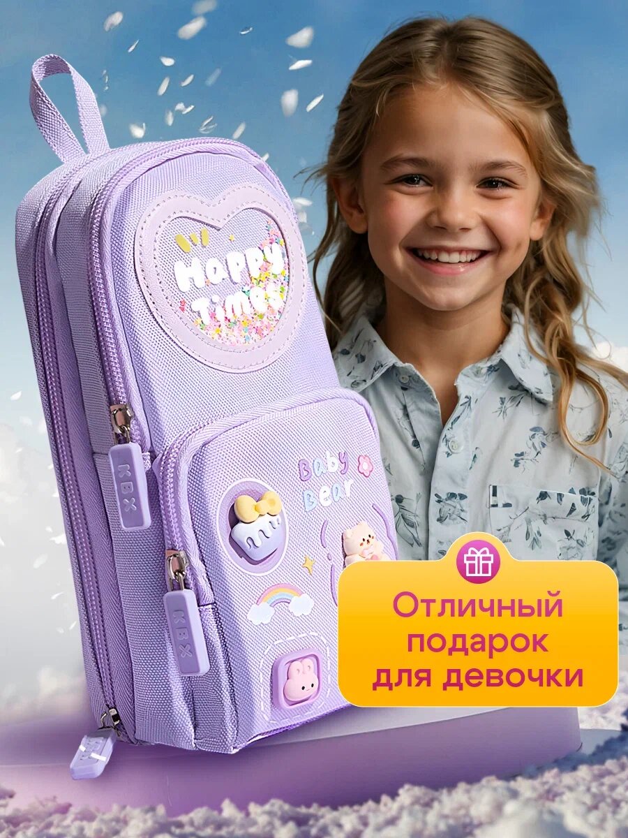 Пенал школьный Malpaca "Happy Times", для девочек, корейский стиль, 5 отделений, фиолетовый интересное: