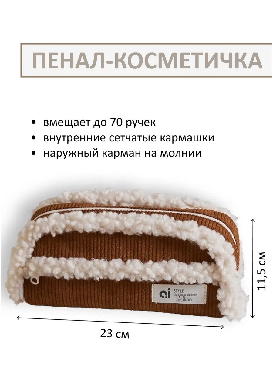 Пенал ProКанц "Хюгге", вельвет/искусственный мех, мягкий, для девочек, коричневый интересное: