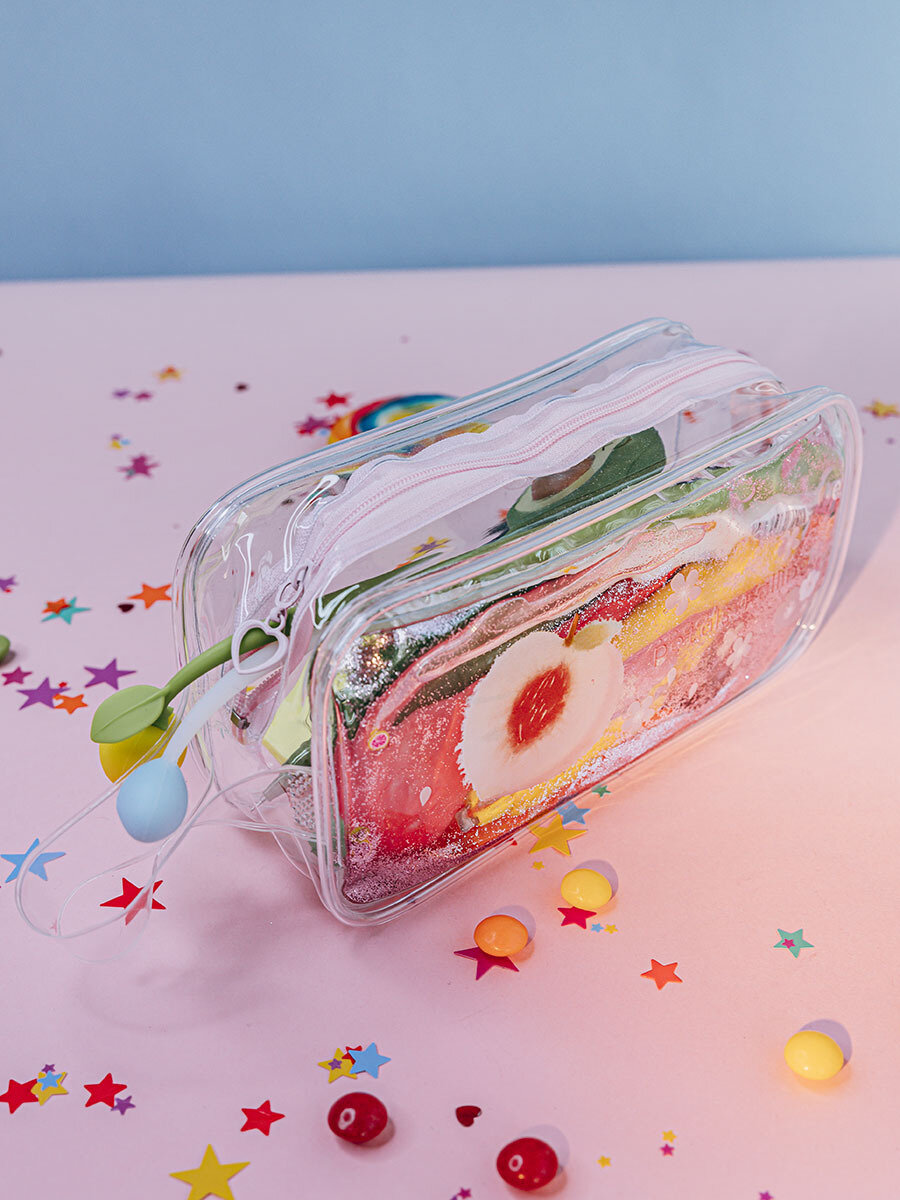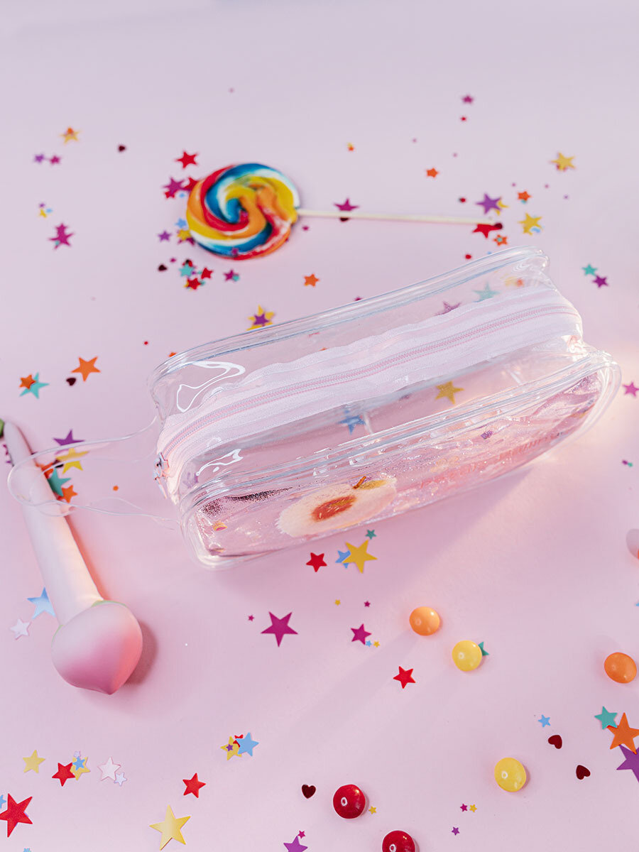 Школьный пенал с жидкостью и блестками Персик прозрачный интересное: