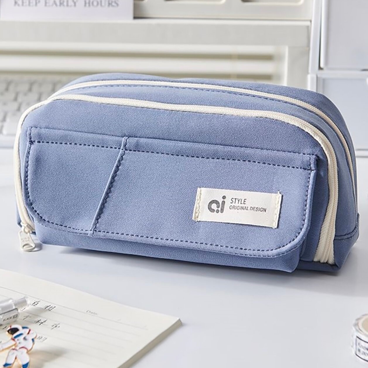 Пенал школьный, органайзер для канцелярии, 3 отделения, цвет голубой