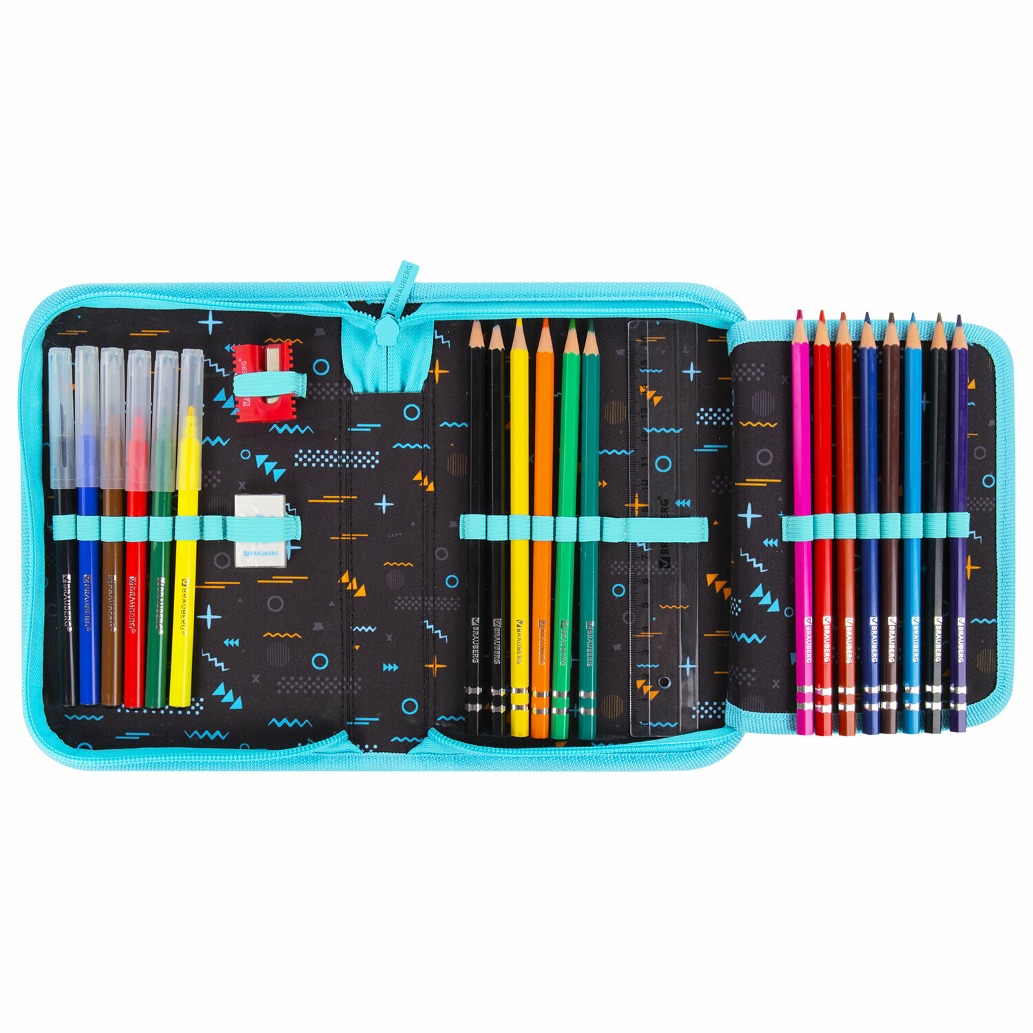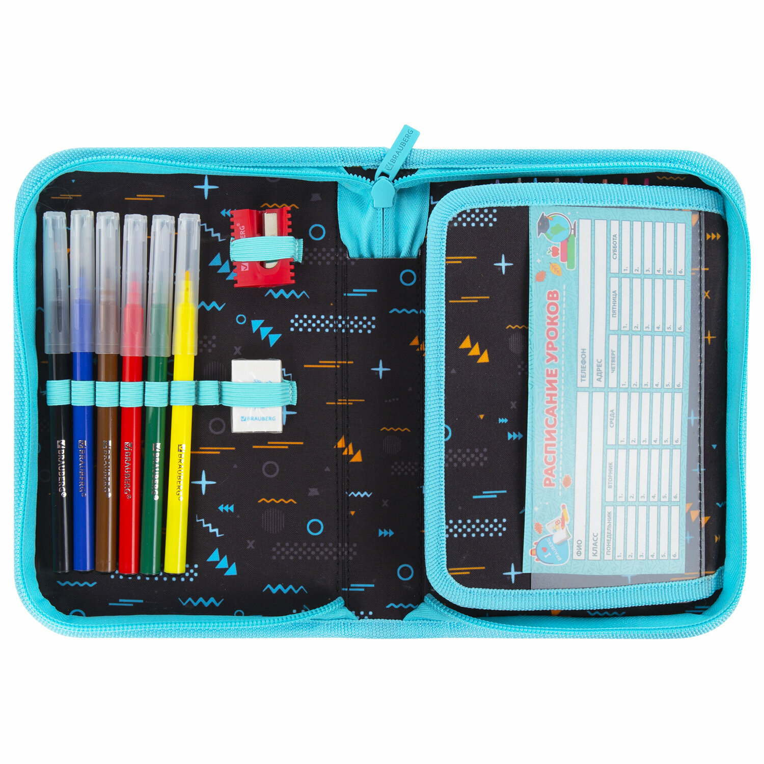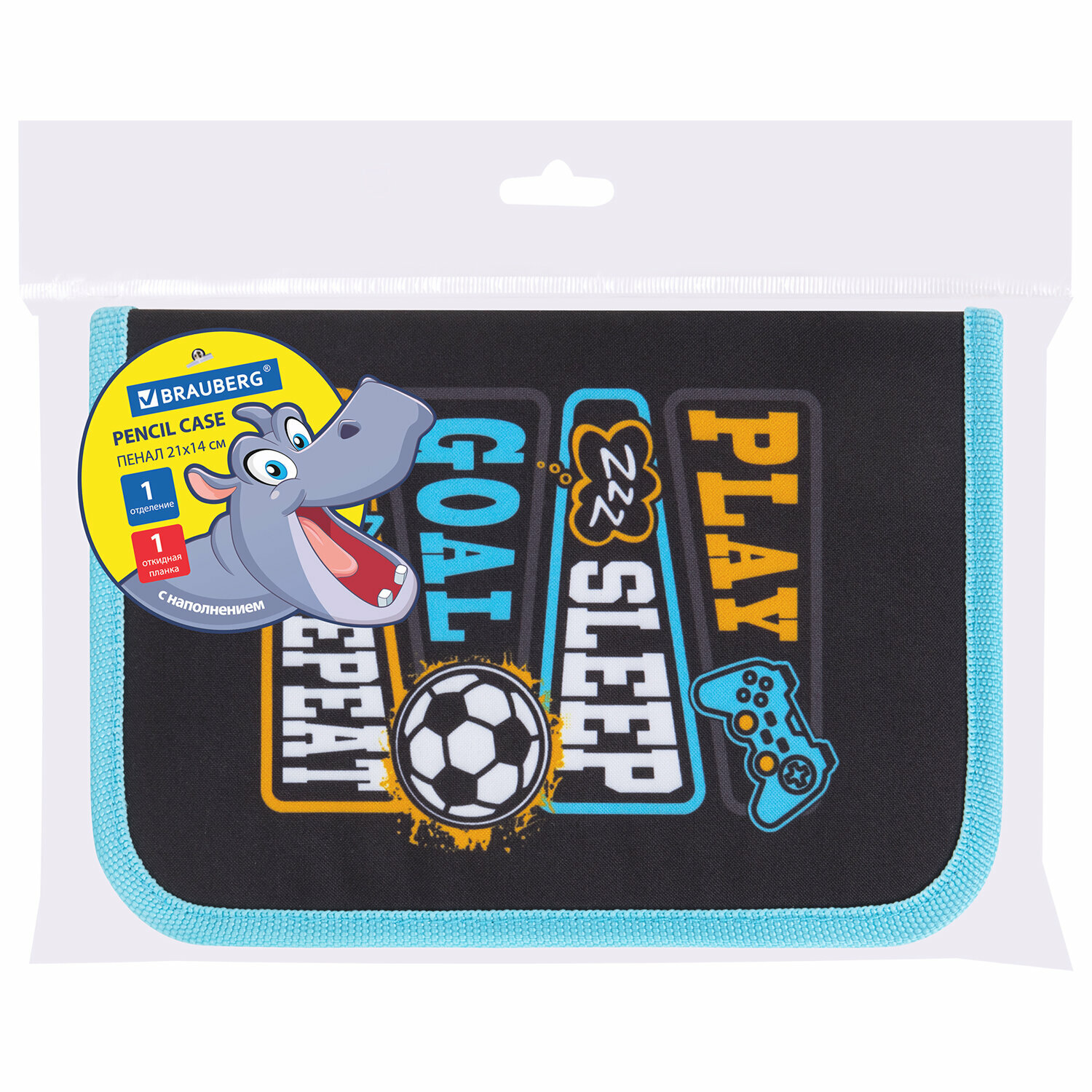 Пенал Brauberg с наполнением, 1 отделение, 1 откидная планка, 24 предмета, 21х14 см, Play sleep repeat, 272353 интересное: