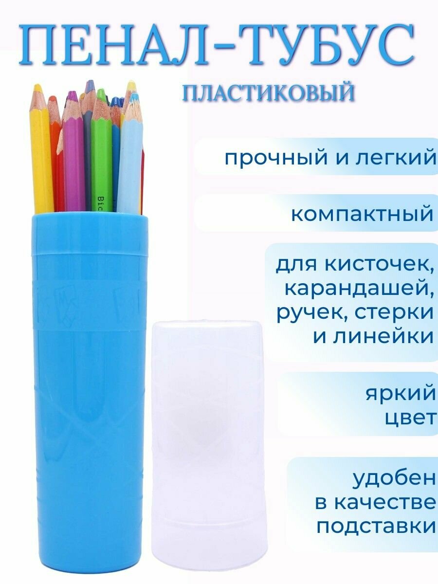 Пенал тубус пластиковый прочный для школы голубой-прозрачный интересное: