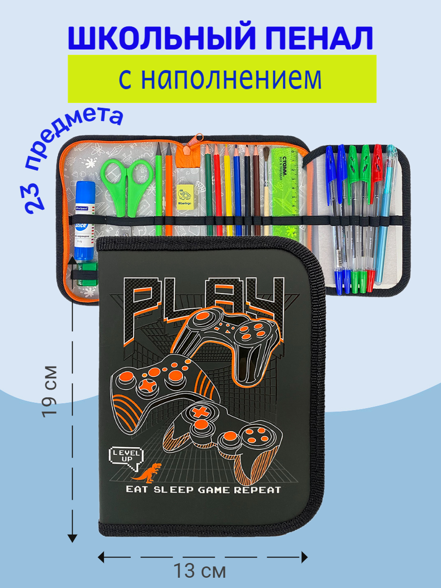 Купить Пенал с наполнением "джойстики", 23 предмета, с откидной планкой