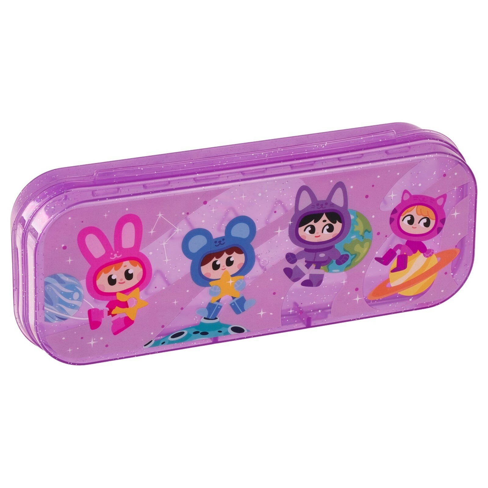 Пенал-футляр СТАММ "Школьная пора Подружки", 215x90x43мм, прозрачный, с блестками