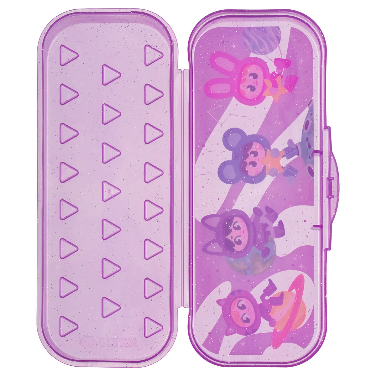 Пенал-футляр СТАММ "Школьная пора Подружки", 215x90x43мм, прозрачный, с блестками