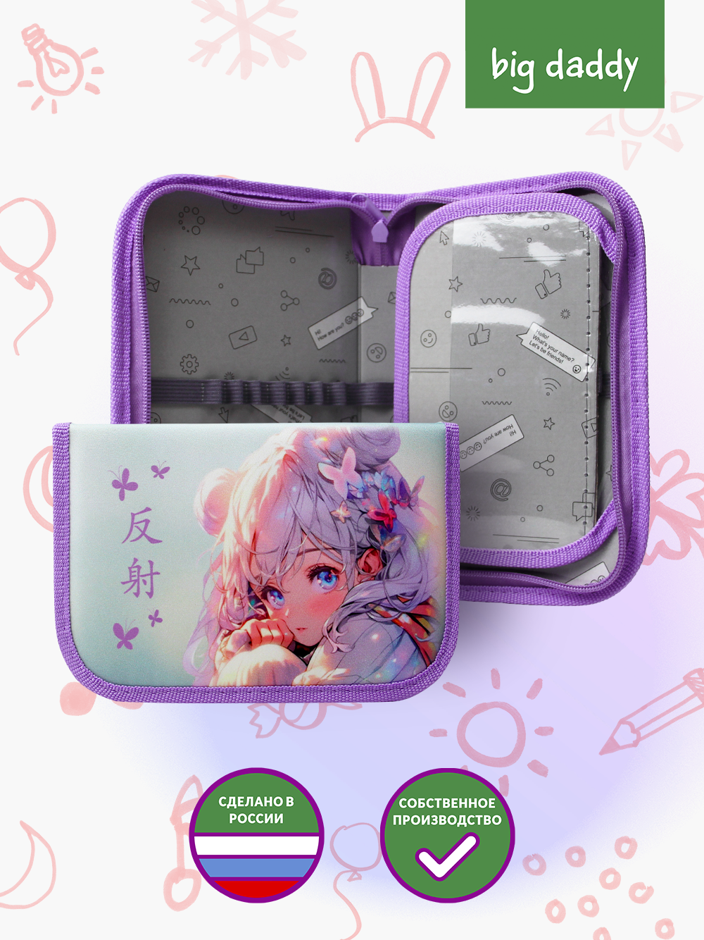 СохранитьПенал bigdaddy "Аниме - бабочки", школьный, 1 отделение, с откидной планкой интересное: