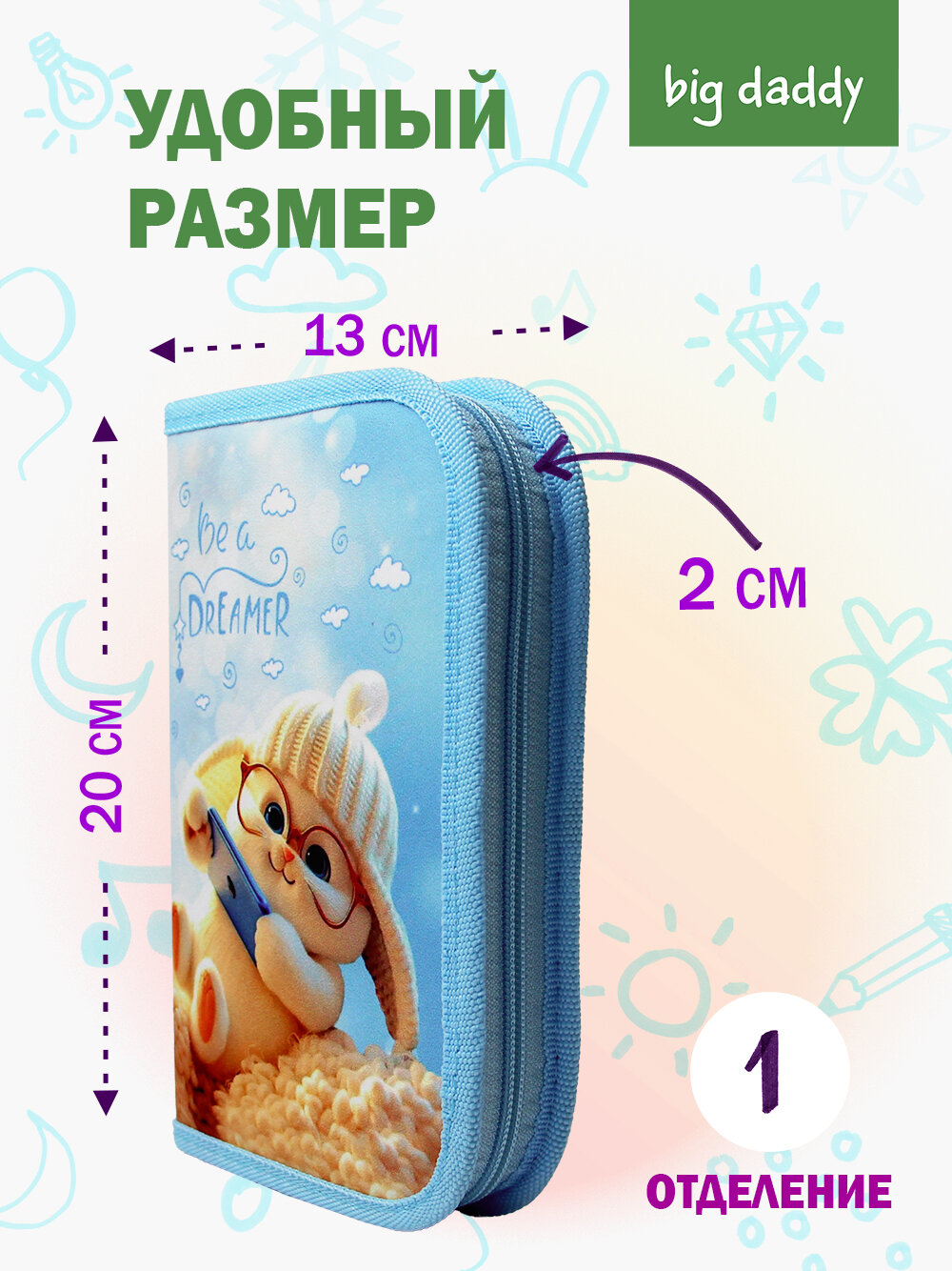 Пенал bigdaddy "Милашка", школьный, 1 отделение, с откидной планкой