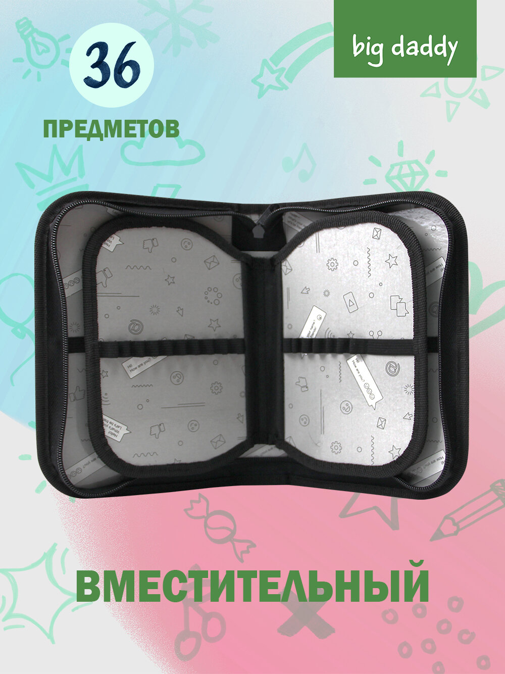 Пенал школьный BigDaddy, тканевый, три секции, два блока 14 см x 21 см x 4 см smart block "Черныш"