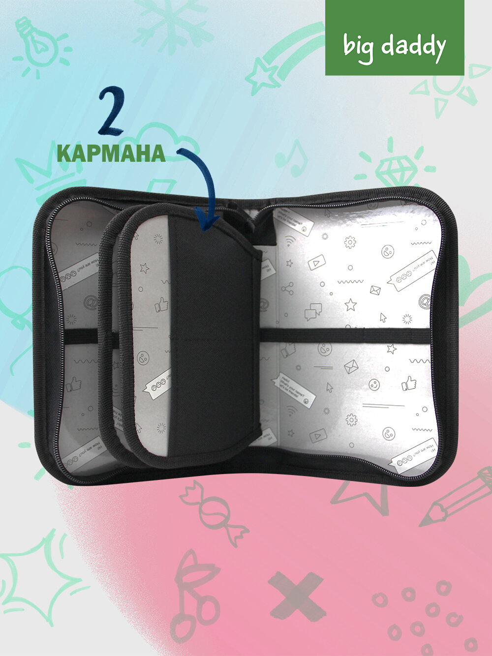 Пенал школьный BigDaddy, тканевый, три секции, два блока 14 см x 21 см x 4 см smart block "Стильная пара"
