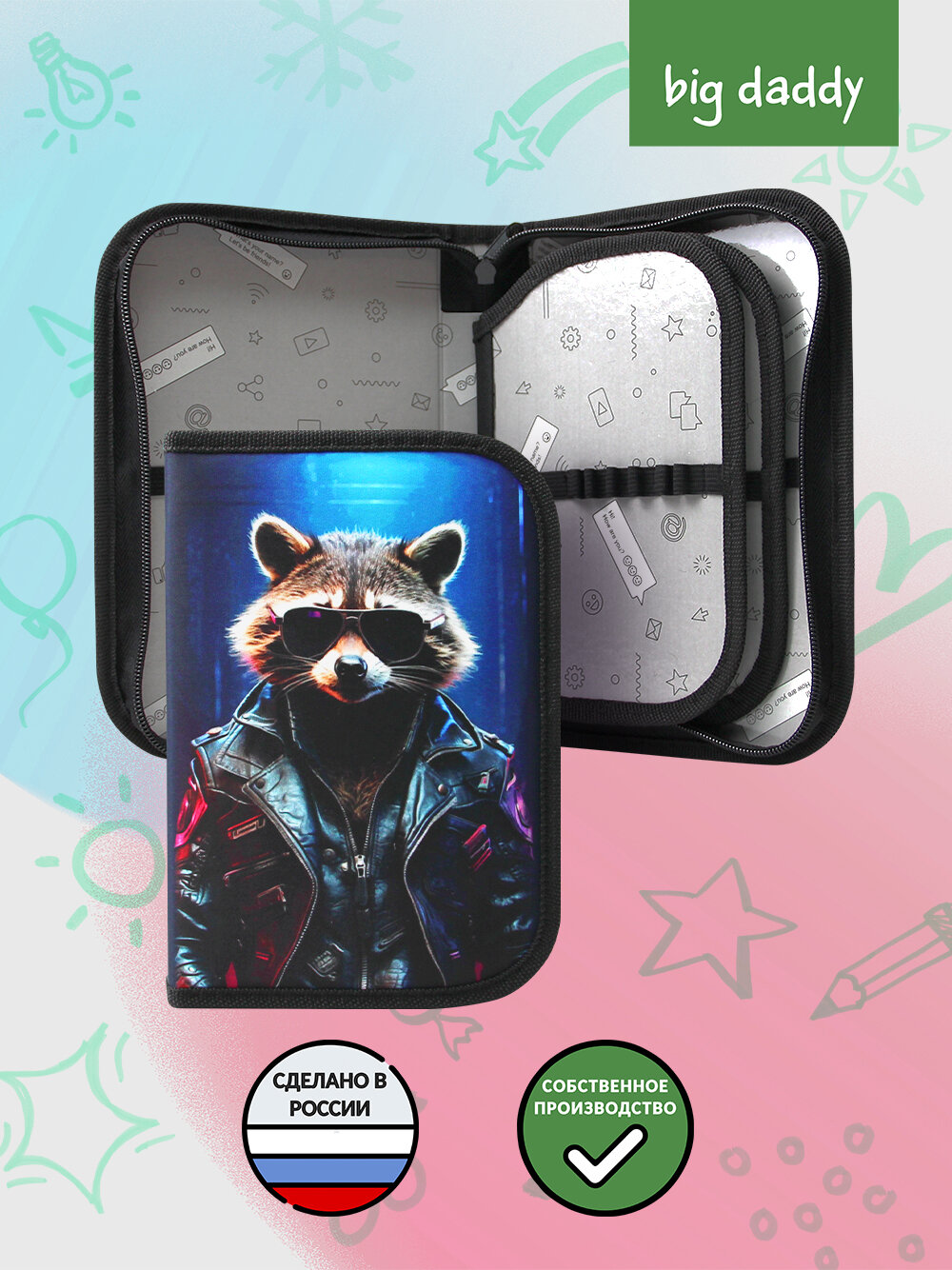 Купить Пенал школьный BigDaddy, тканевый, три секции, два блока 14 см x 21 см x 4 см smart block "Крутой Енот"