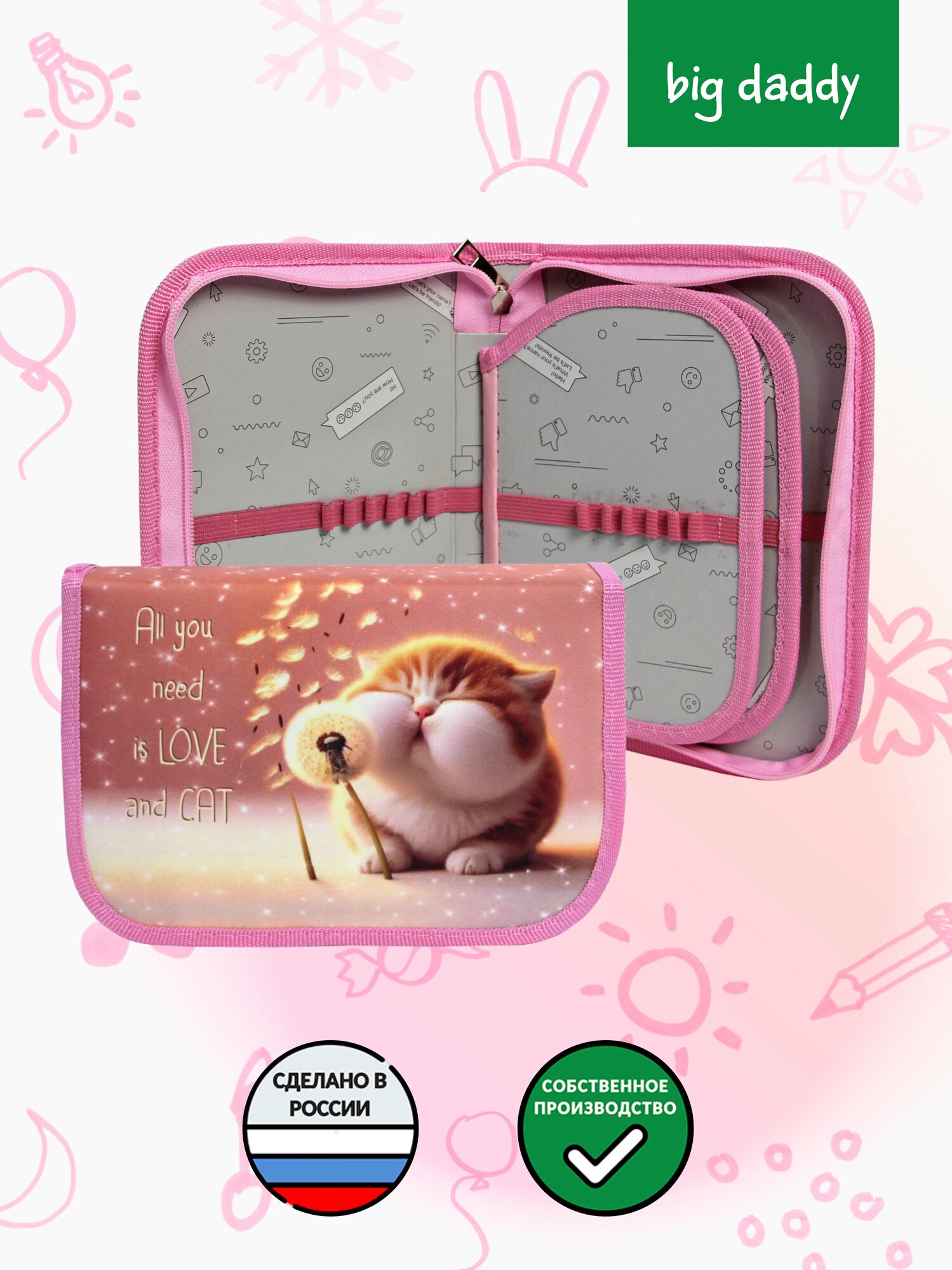 Пенал школьный BigDaddy, тканевый, три секции, два блока 14 см x 21 см x 4 см smart block "Лучший кот"