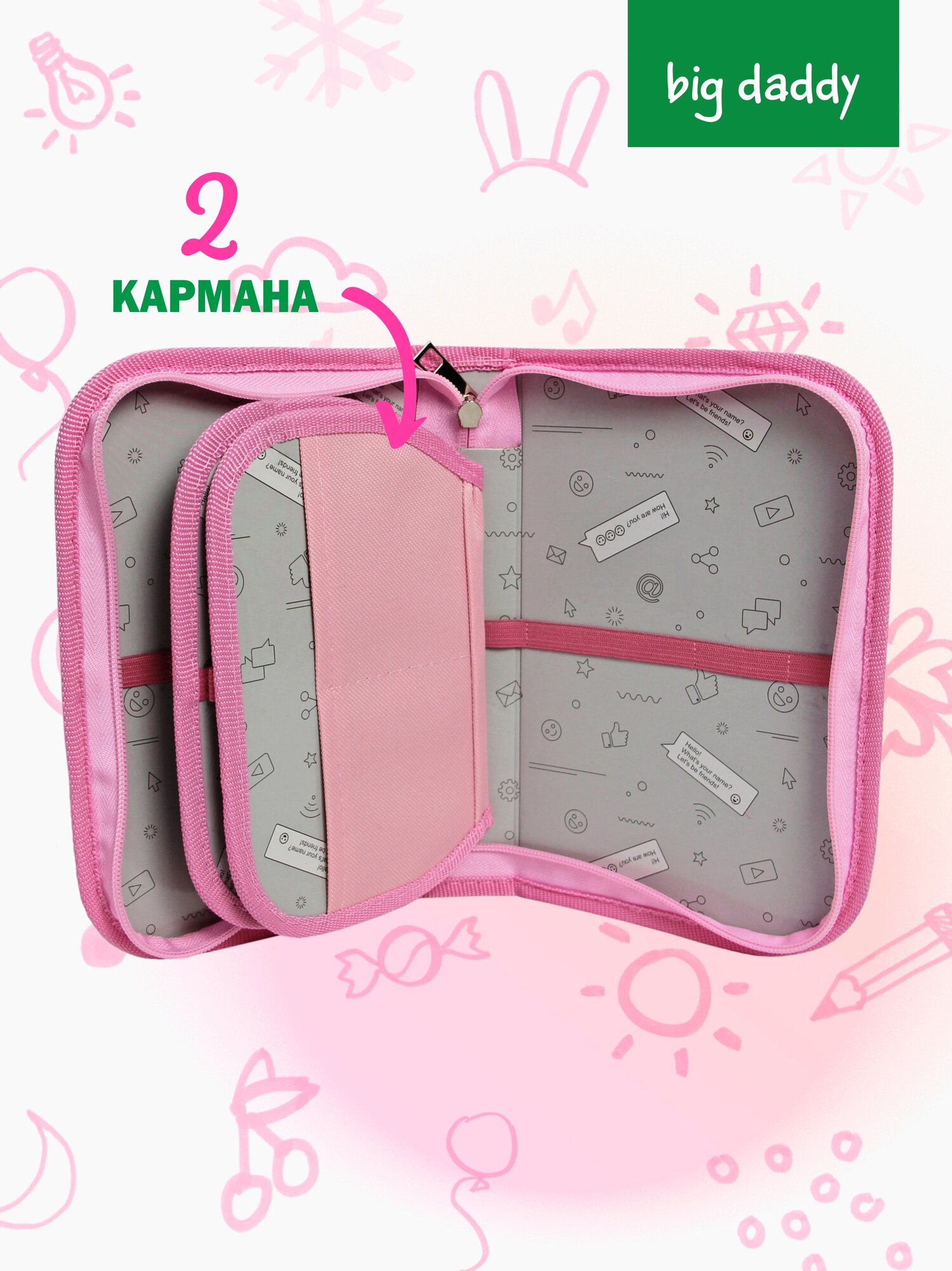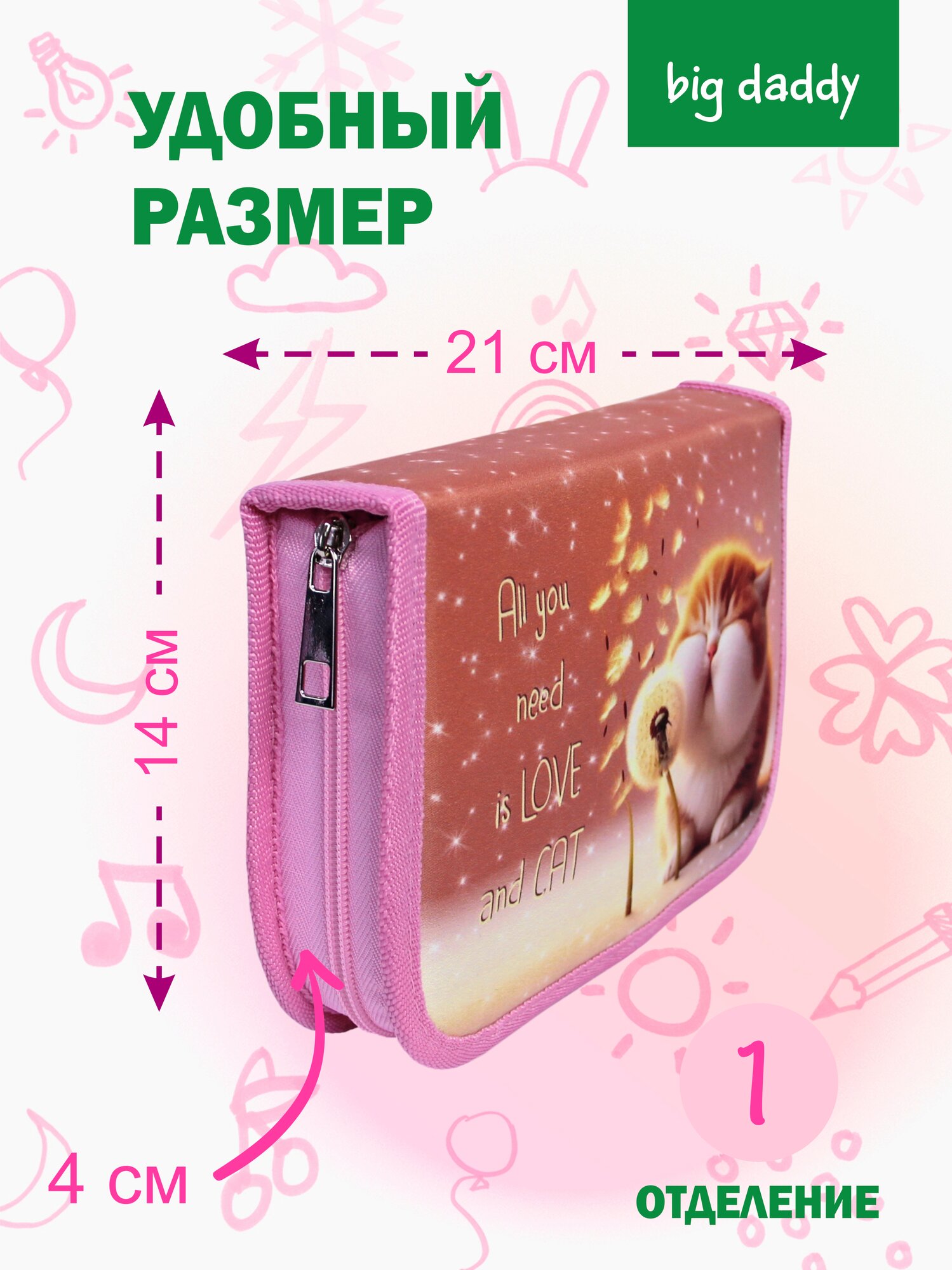 Пенал школьный BigDaddy, тканевый, три секции, два блока 14 см x 21 см x 4 см smart block "Девочка-любовь"