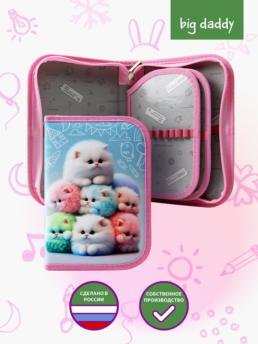 Купить Пенал школьный BigDaddy, тканевый, три секции, два блока 14 см x 21 см x 4 см smart block "Пушистики"