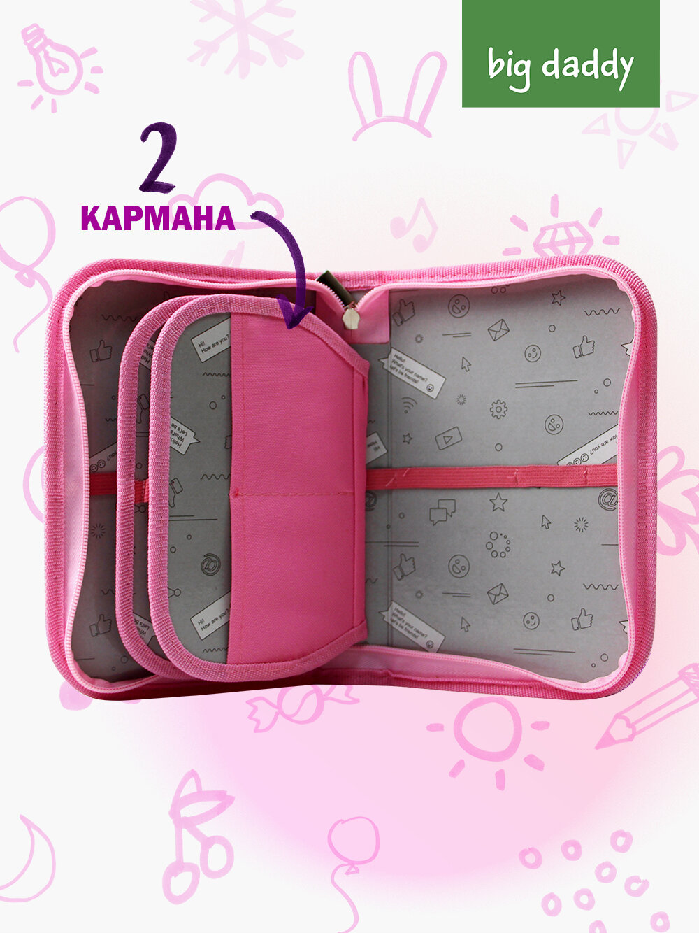 Пенал школьный BigDaddy, тканевый, три секции, два блока 14 см x 21 см x 4 см smart block "Девочка-любовь"