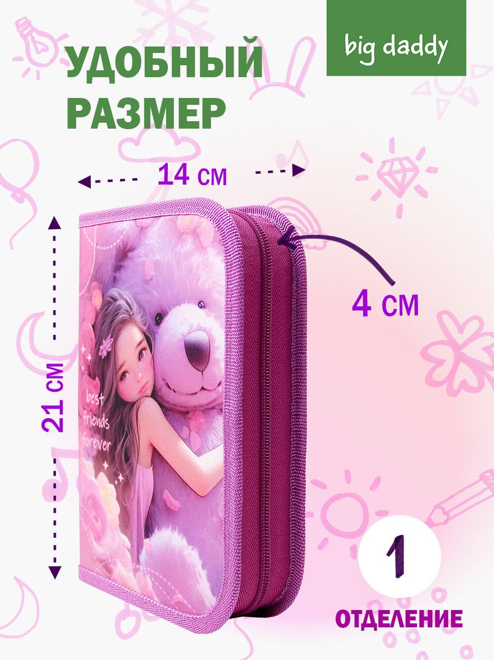 Пенал школьный BigDaddy, тканевый, три секции, два блока 14 см x 21 см x 4 см smart block "Девочка-любовь"