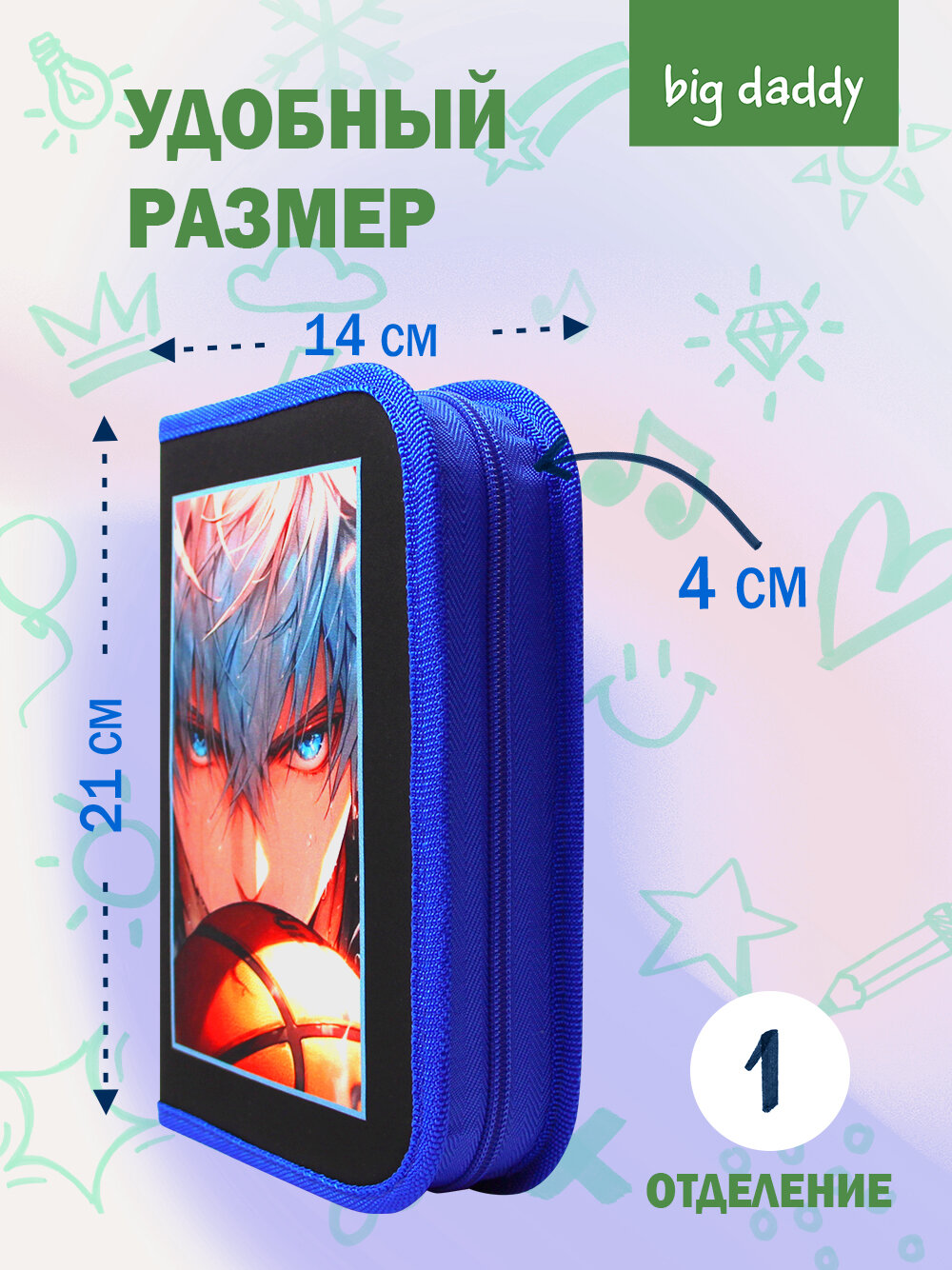 Ниже Вы можете прочитать отзывы на Пенал школьный BigDaddy, тканевый, три секции, два блока 14 см x 21 см x 4 см smart block "Аниме-баскетбол", ознакомится с подробными характеристиками, посмотреть интересные обзоры и фотографии на Пенал школьный BigDaddy, тканевый, три секции, два блока 14 см x 21 см x 4 см smart block "Аниме-баскетбол".