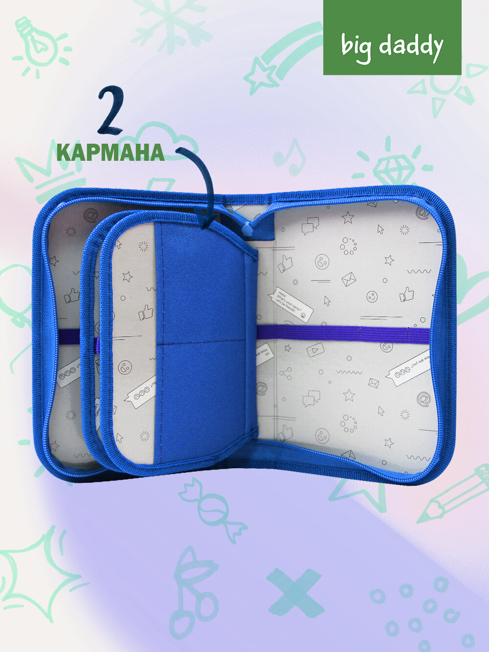 Пенал школьный BigDaddy, тканевый, три секции, два блока 14 см x 21 см x 4 см smart block "Мой лучший друг"