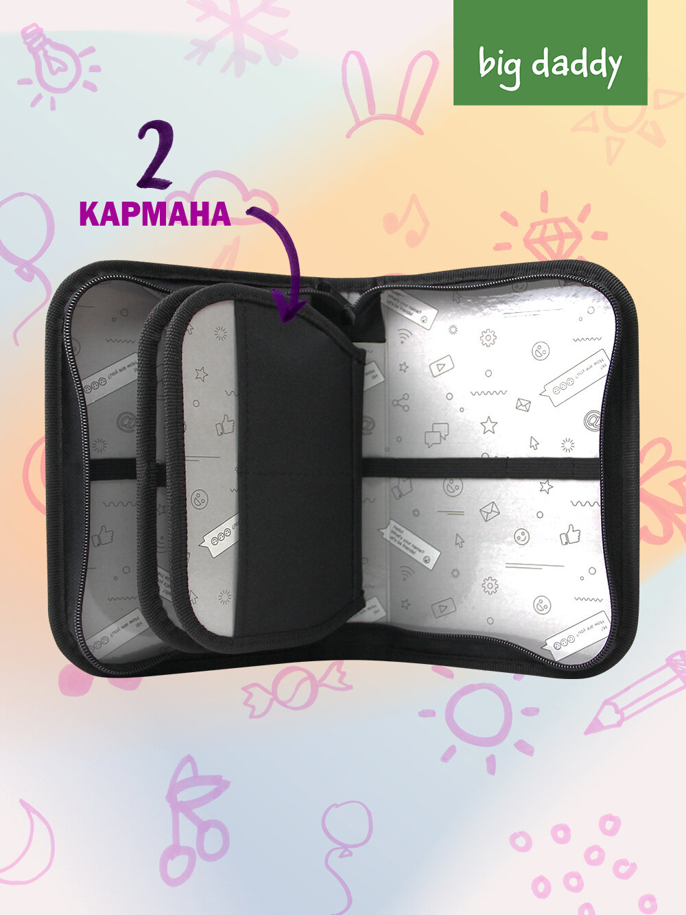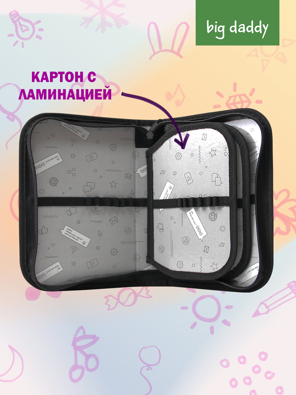 Пенал школьный BigDaddy, тканевый, три секции, два блока 14 см x 21 см x 4 см smart block "Мой лучший друг"