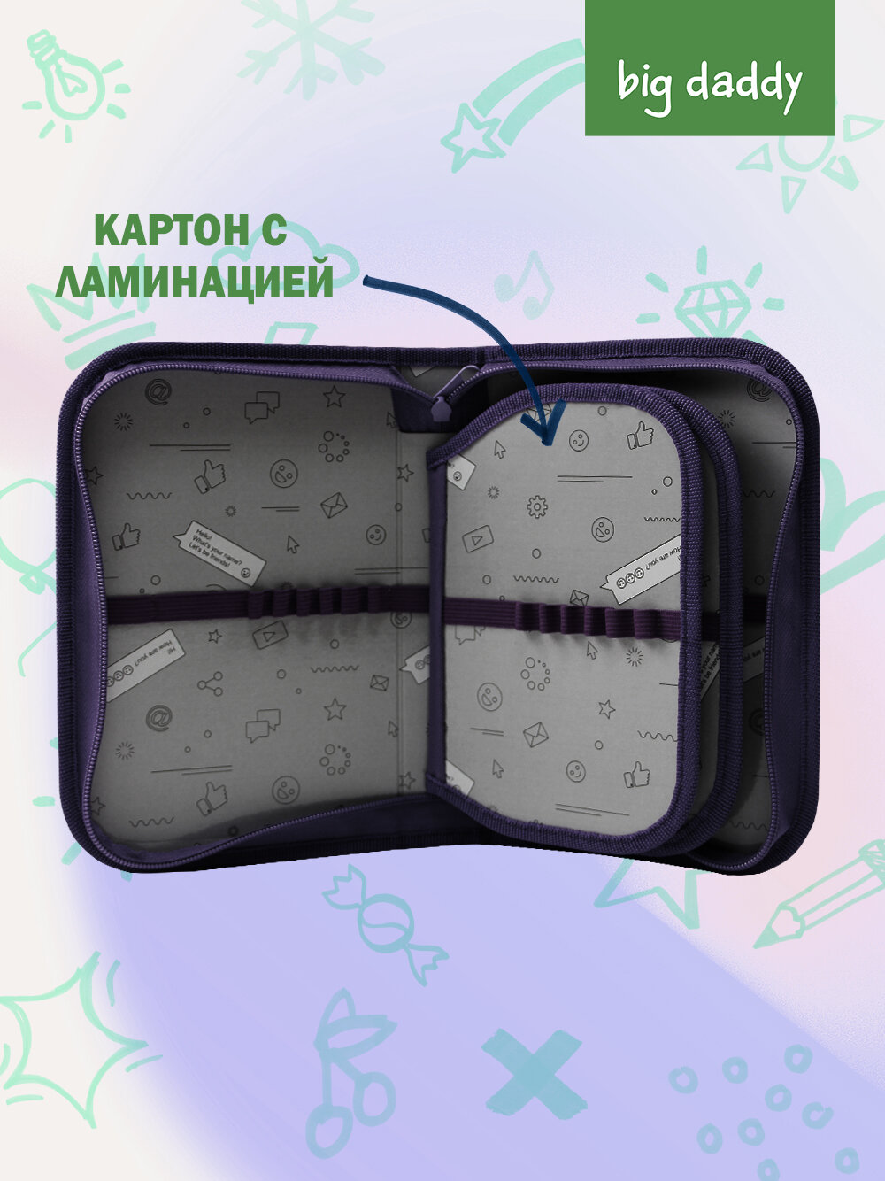 Пенал школьный BigDaddy, тканевый, три секции, два блока 14 см x 21 см x 4 см smart block "Мой лучший друг"