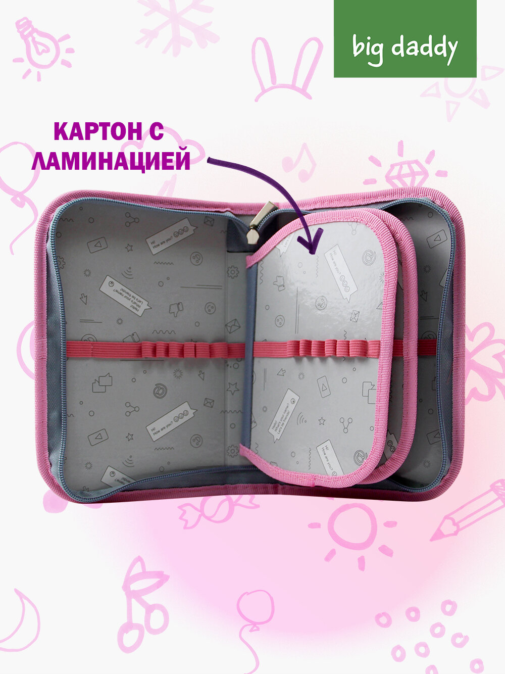 Пенал школьный BigDaddy, тканевый, три секции, два блока 14 см x 21 см x 4 см smart block "Девочка-любовь"