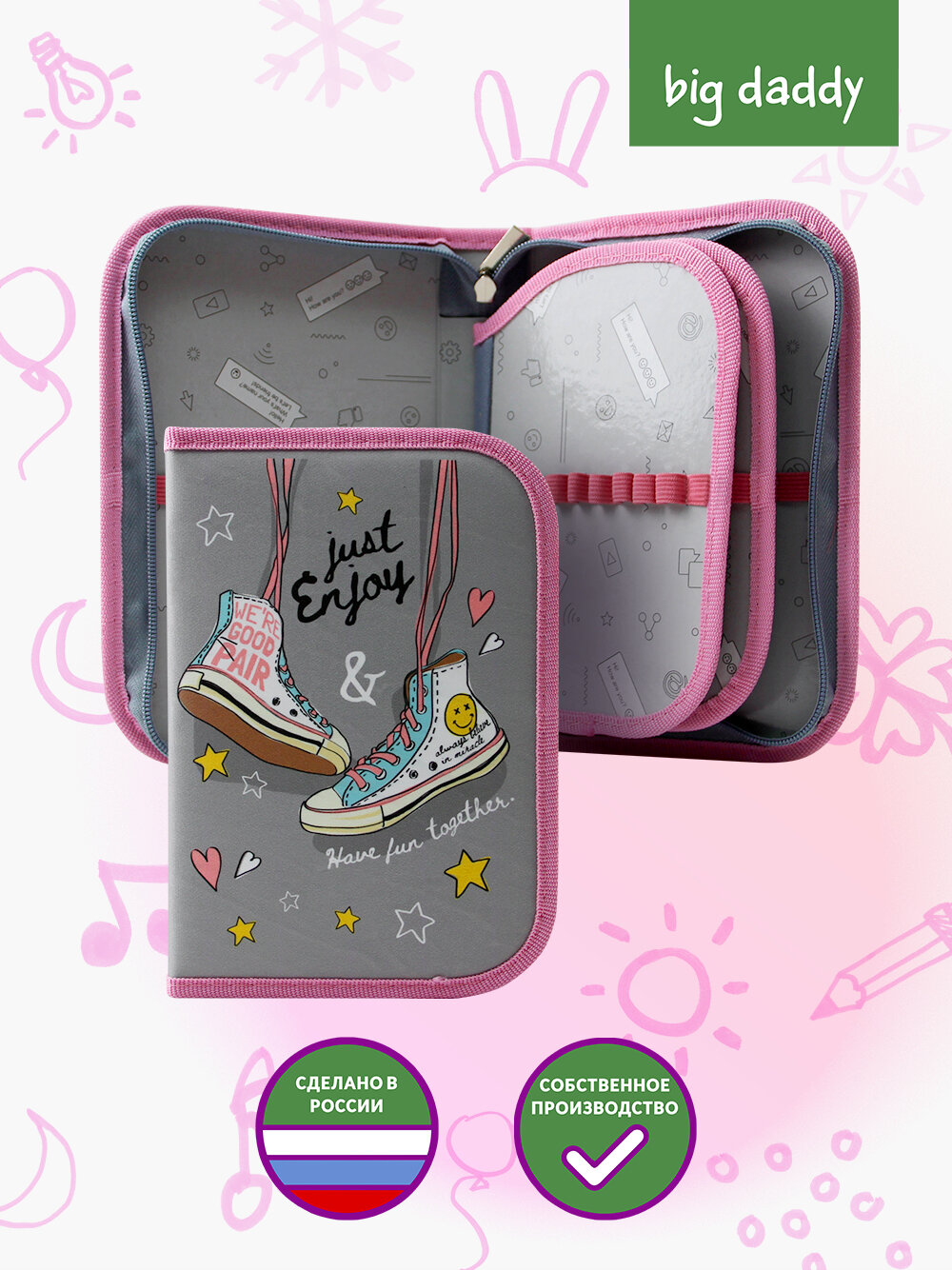 Пенал школьный BigDaddy, тканевый, три секции, два блока 14 см x 21 см x 4 см smart block "Мой лучший друг"