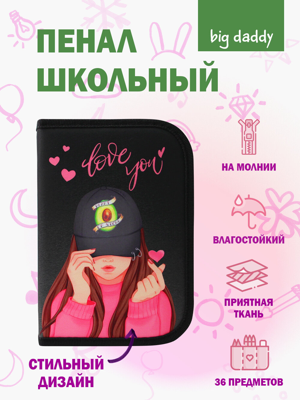 Купить Пенал школьный BigDaddy, тканевый, три секции, два блока 14 см x 21 см x 4 см smart block "Девочка-любовь"