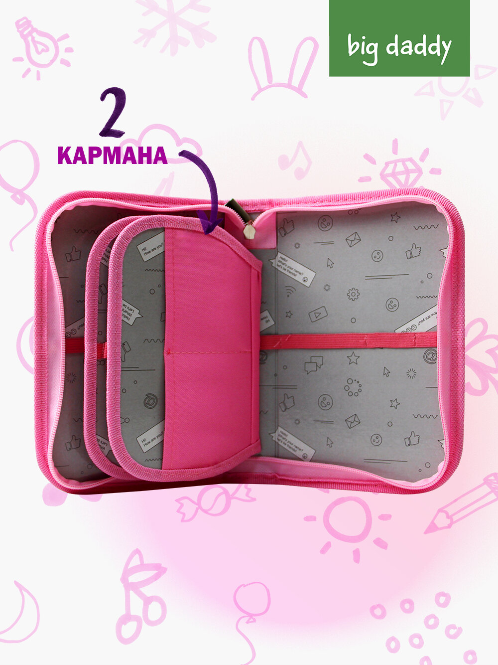 Пенал школьный BigDaddy, тканевый, три секции, два блока 14 см x 21 см x 4 см smart block "Девочка-любовь"