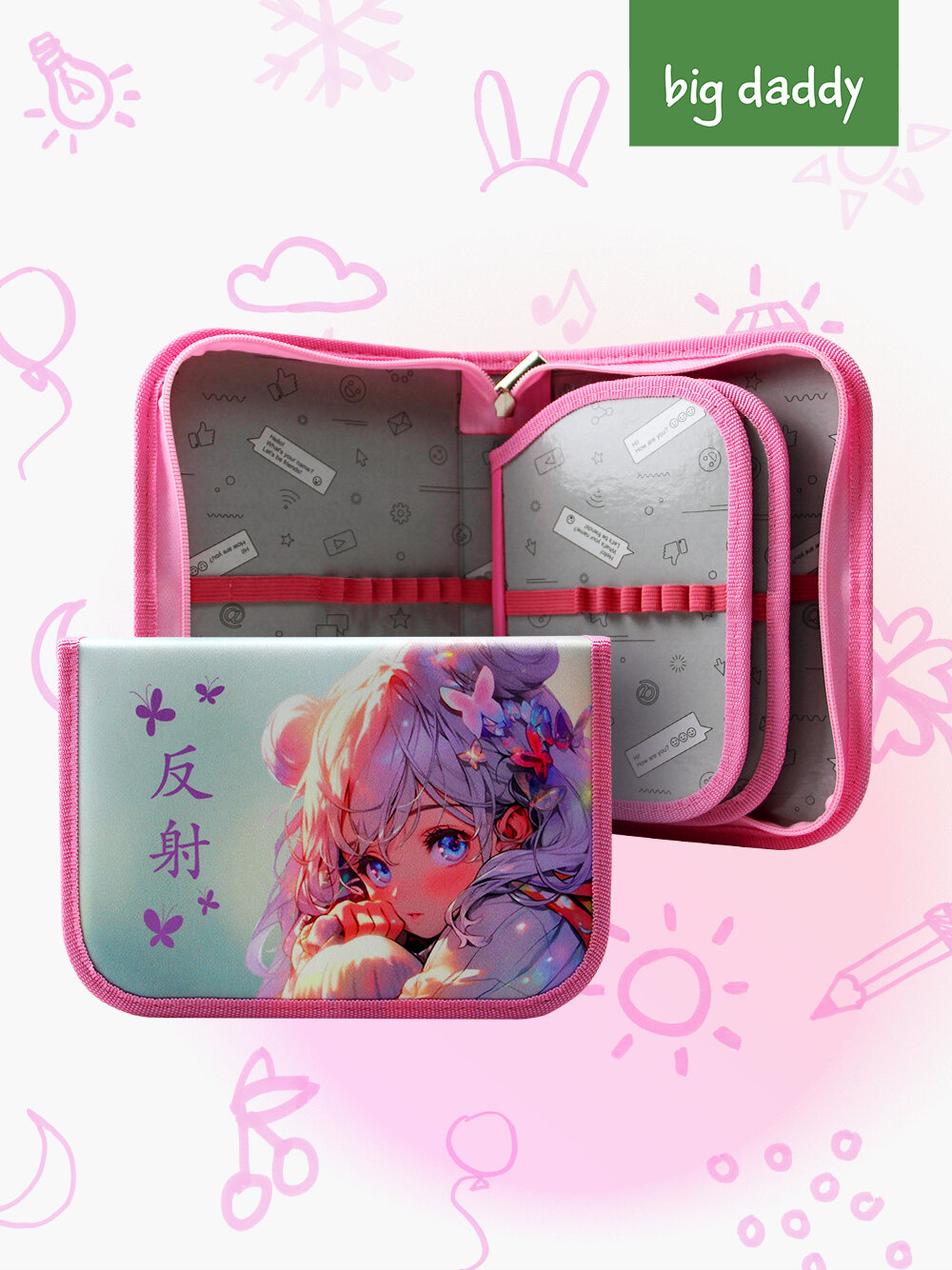 Купить Пенал школьный BigDaddy, тканевый, три секции, два блока 14 см x 21 см x 4 см smart block "Аниме-бабочки"