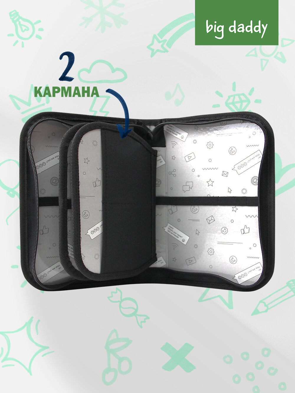 Пенал школьный BigDaddy, тканевый, три секции, два блока 14 см x 21 см x 4 см smart block "Мой лучший друг"