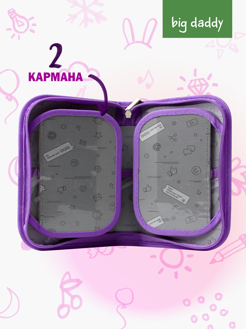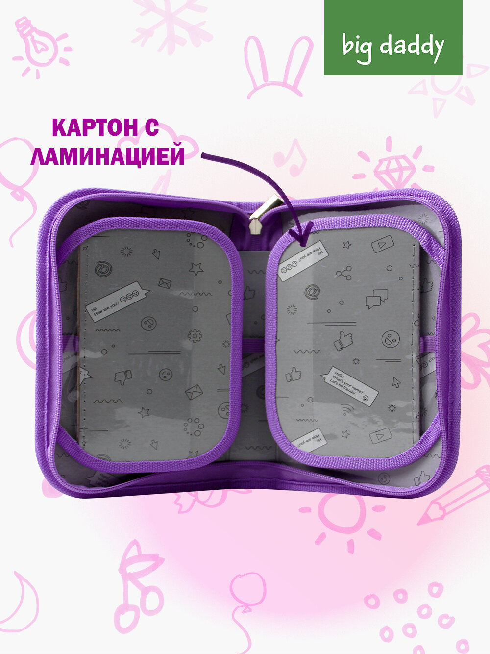 Пенал школьный bigdaddy 1 отделение 2 откидные секции 130*210*35мм "Няшка"