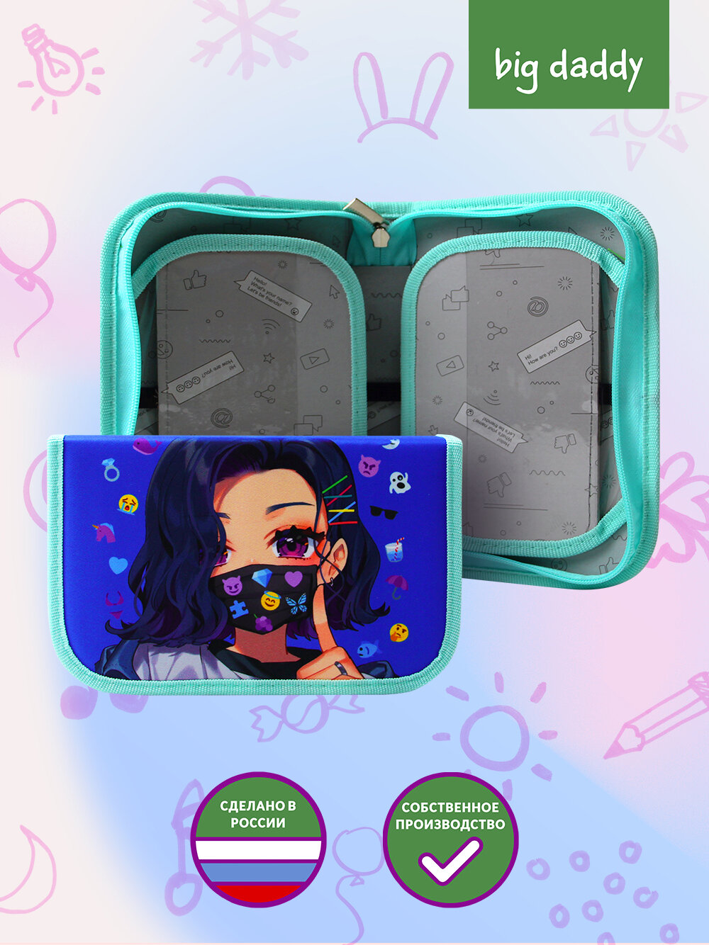 Пенал школьный bigdaddy 1 отделение 2 откидные секции 130*210*35мм "Девочка-аниме в кепке"