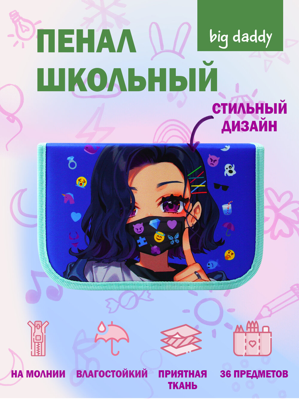 СохранитьПенал школьный bigdaddy 1 отделение 2 откидные секции 130*210*35мм "Аниме Маска" интересное: