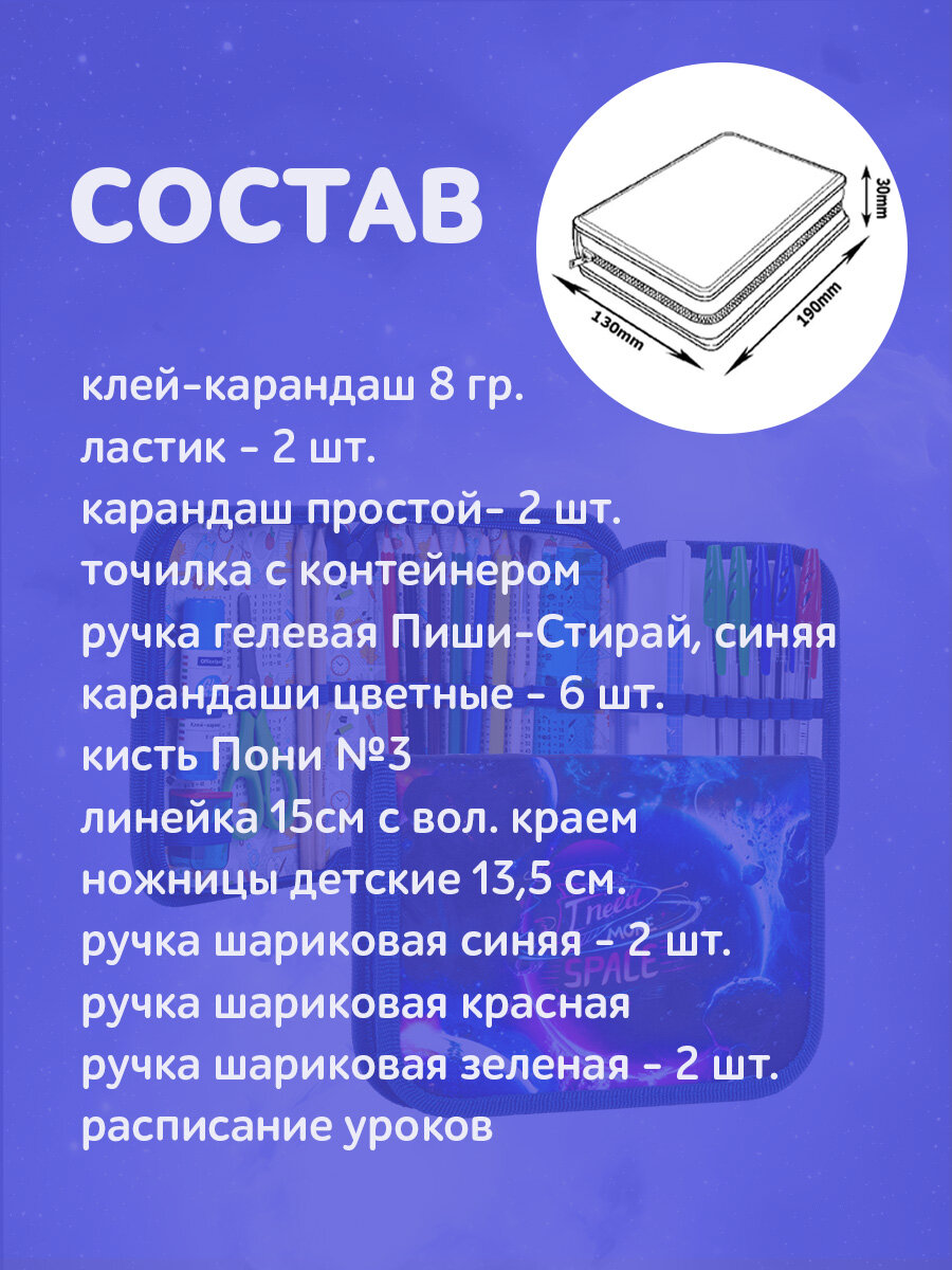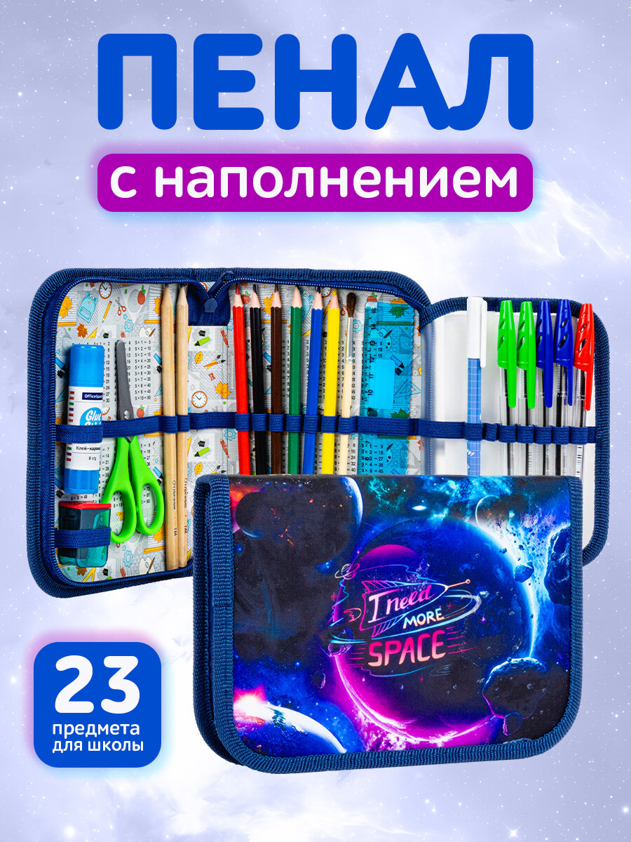 Пенал с наполнением "SPACE", 23 предмета, с откидной планкой интересное: