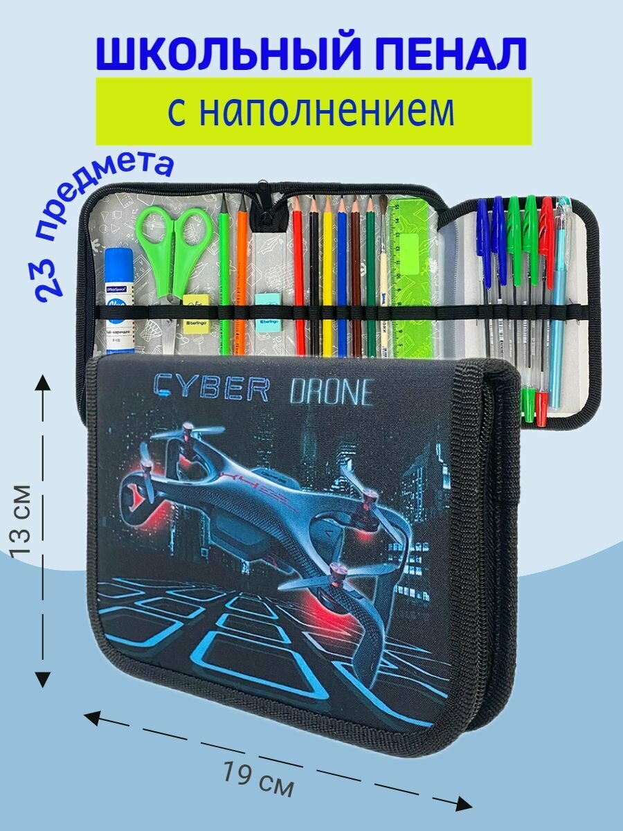 Пенал с наполнением "кибер дрон", 23 предмета, с откидной планкой интересное: