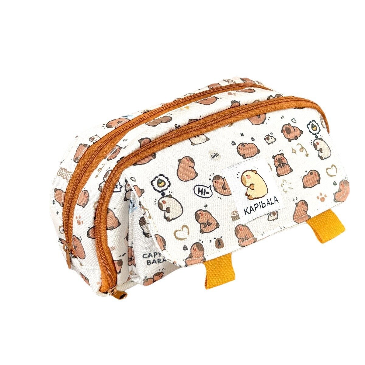 Пенал косметичка для школьников и студентов Капибара, 3 кармана, цвет бежевый