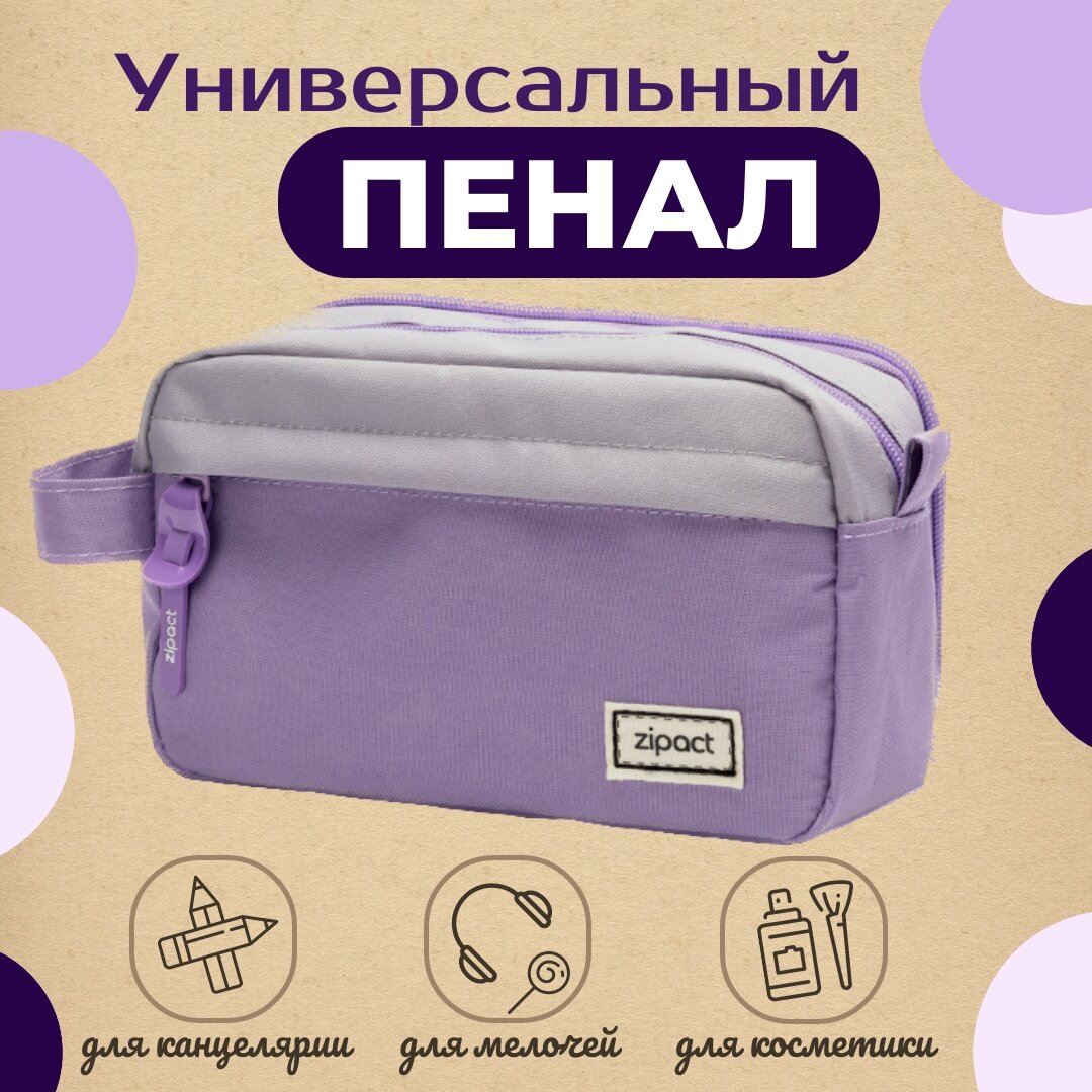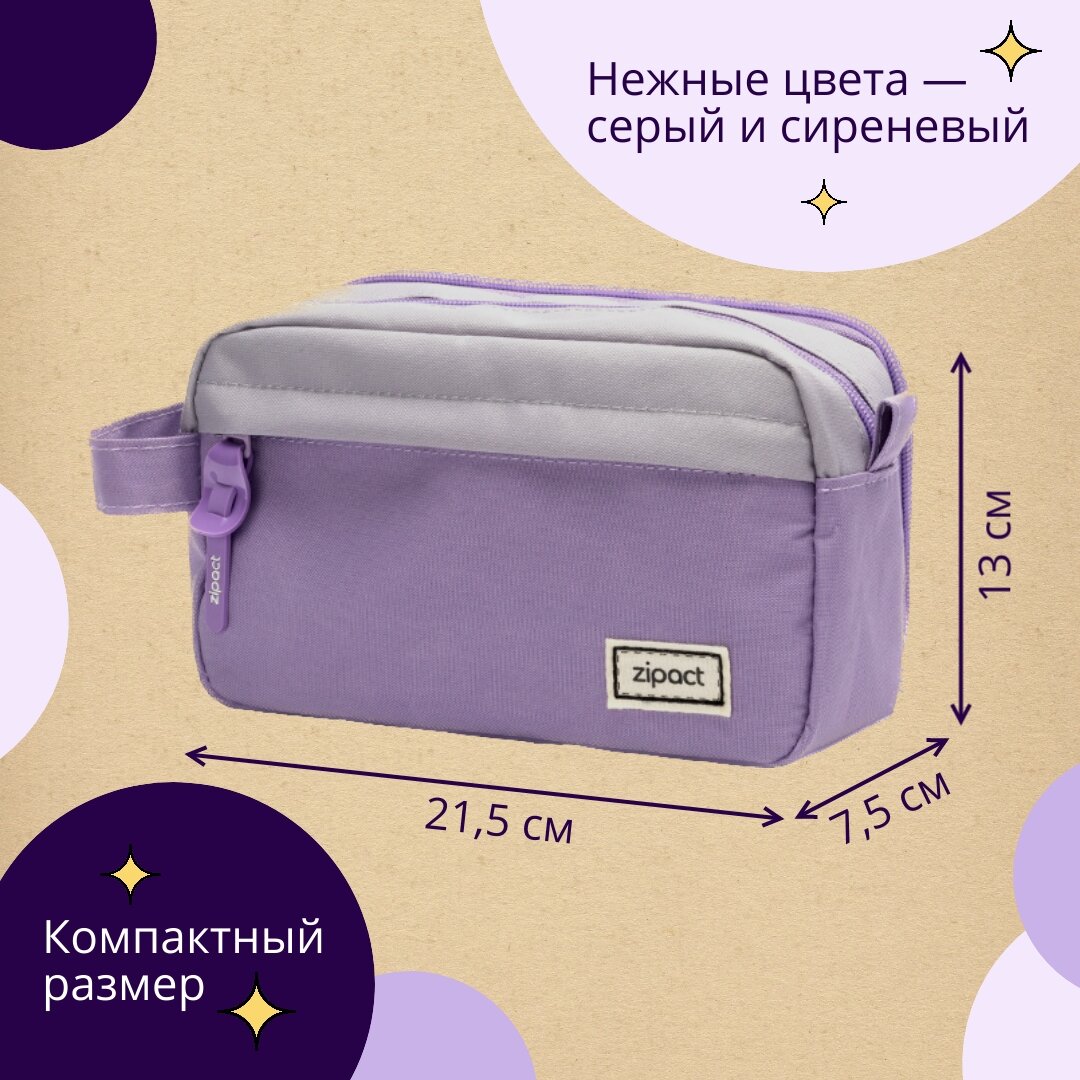 Купить Универсальный пенал-косметичка органайзер для школы, косметики и мелочей 21,5*7,5*13 прямоугольный, серо-сиреневый