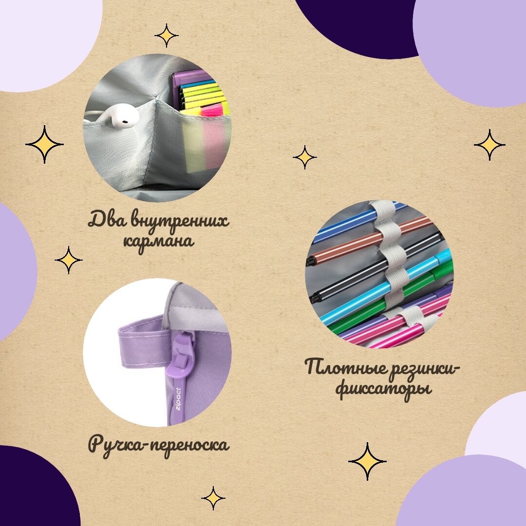 Универсальный пенал-косметичка органайзер для школы, косметики и мелочей 21,5*7,5*13 прямоугольный, серо-сиреневый интересное: