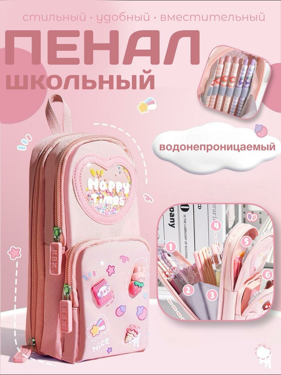 Пенал "Аниме", школьный, для девочек, розовый, с 2 отделениями интересное: