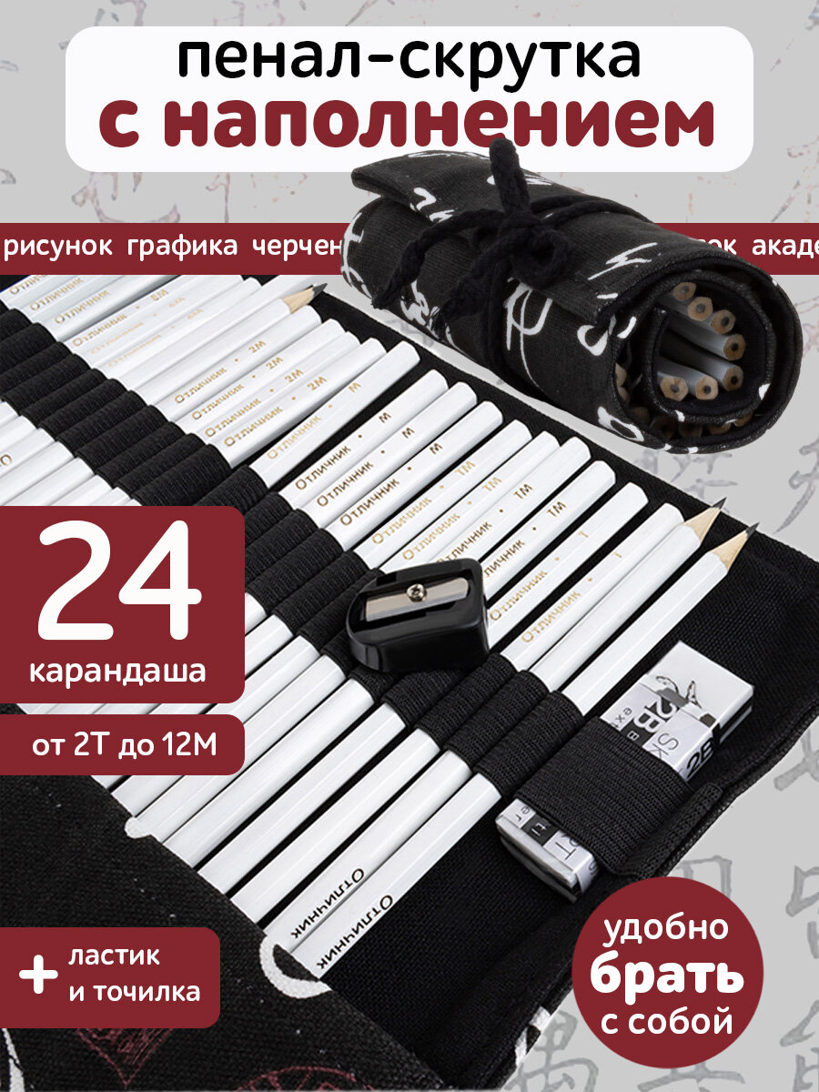 Пенал-скрутка "иероглифы" с наполнением, 24 предмета, Арт. 71377-60 интересное: