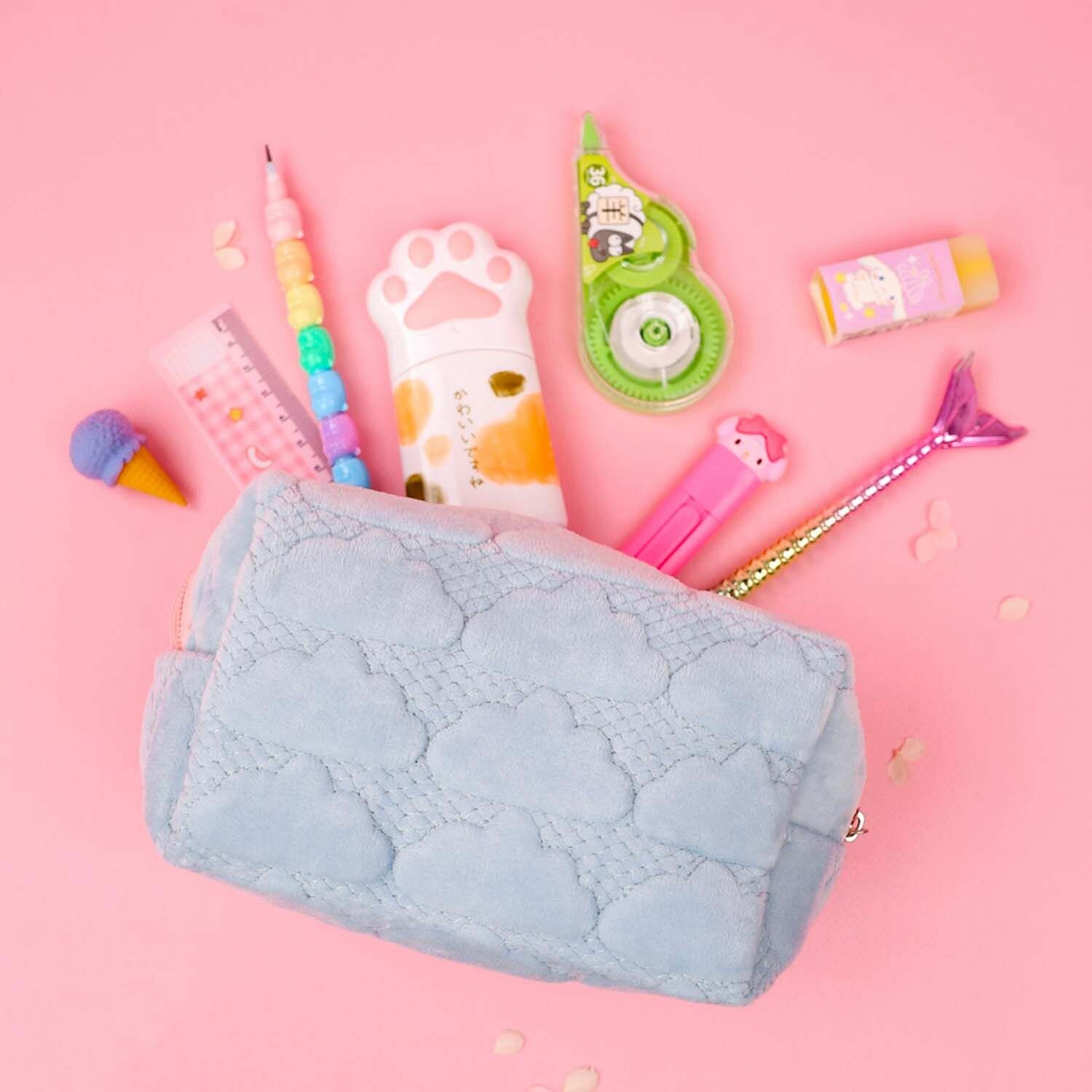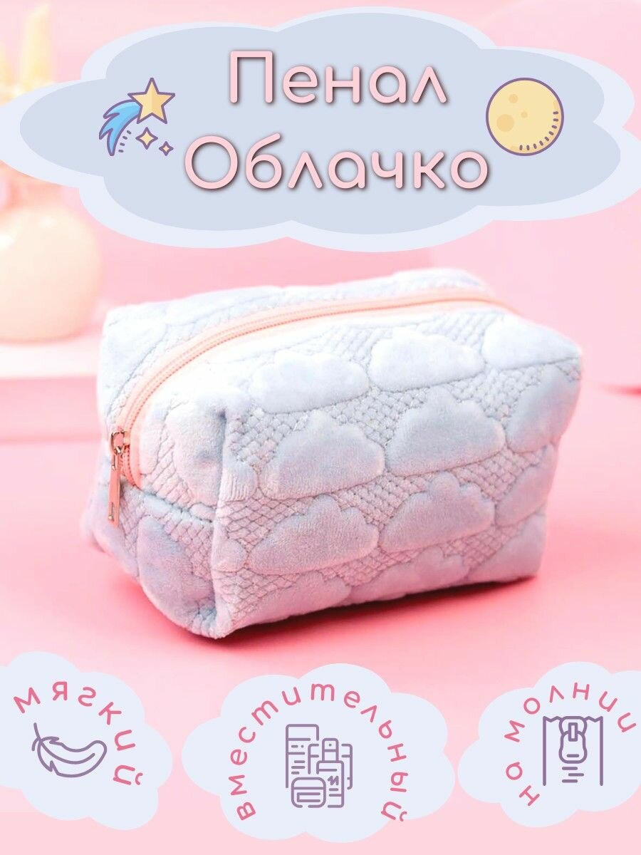Пенал Облако школьный для девочки мягкий вместительный голубой интересное: