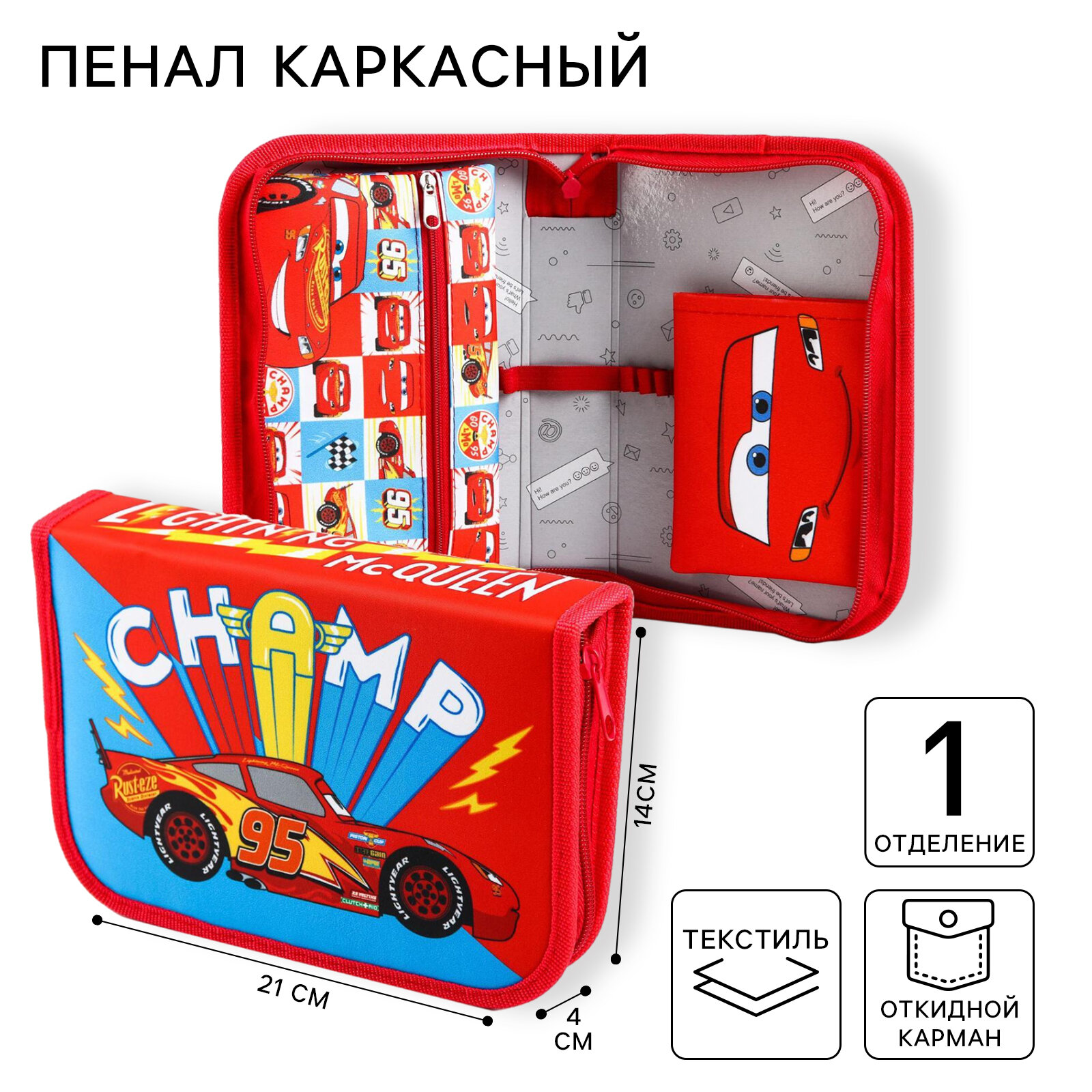 Купить Пенал каркасный, 1 секция, 140х210х40 мм, откидной карман, тканевый, Тачки