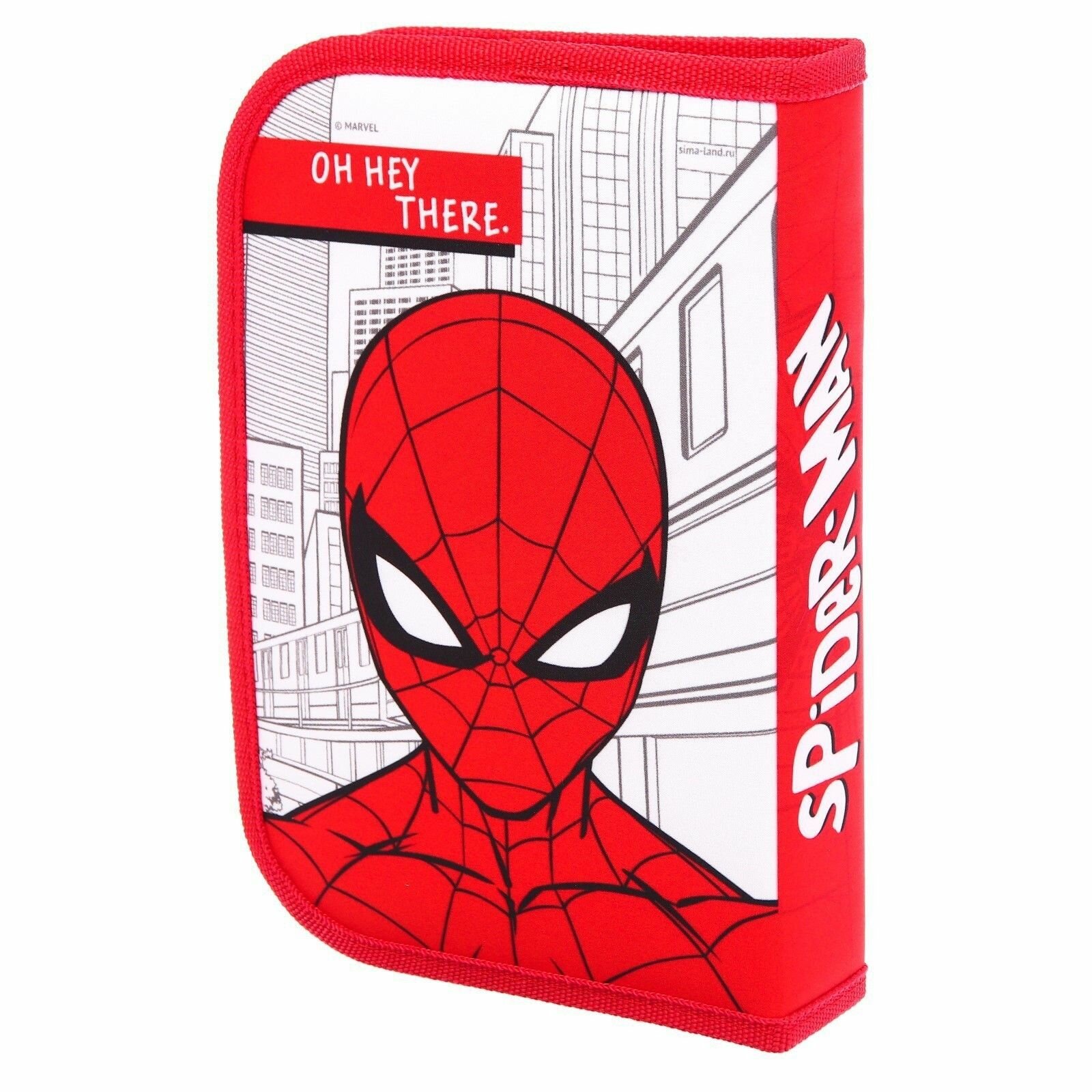 Купить Пенал каркасный, 1 секция, 140х210х40 мм, откидной карман, тканевый, Человек-паук