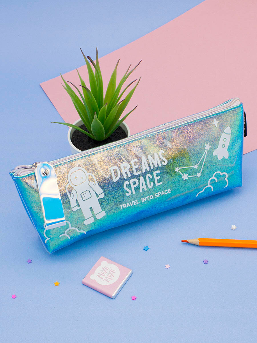 Пенал Созвездия Dreams Space с подсветкой на молнии голубой перламутр