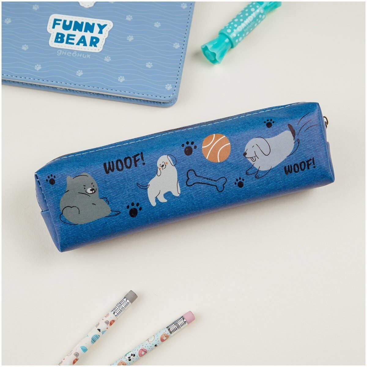 Пенал MESHU "Woof" 200 x55 x 40 мм, искусственная кожа, голубой интересное: