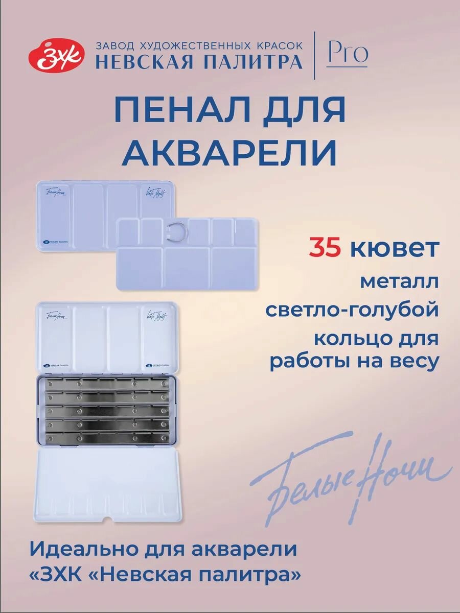 Пенал для акварели металлический на 35 кювет с палитрой Невская палитра Белые ночи, светло-голубой 2011301447 интересное: