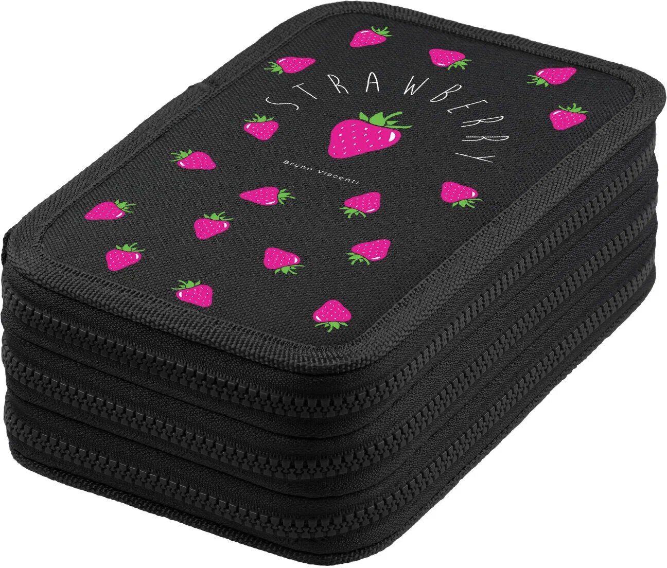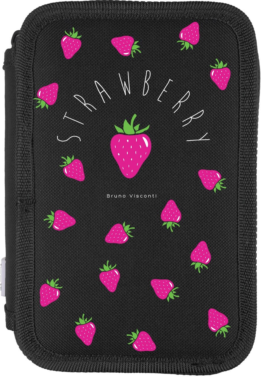 Пенал BrunoVisconti, на молнии, три отделения, (200 х 130 х 75 мм) , "FRUIT RAIN. клубника", Арт. 14-052/15 интересное: