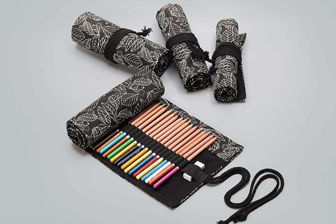 Пенал скрутка Листья черно-белый 72 L интересное: