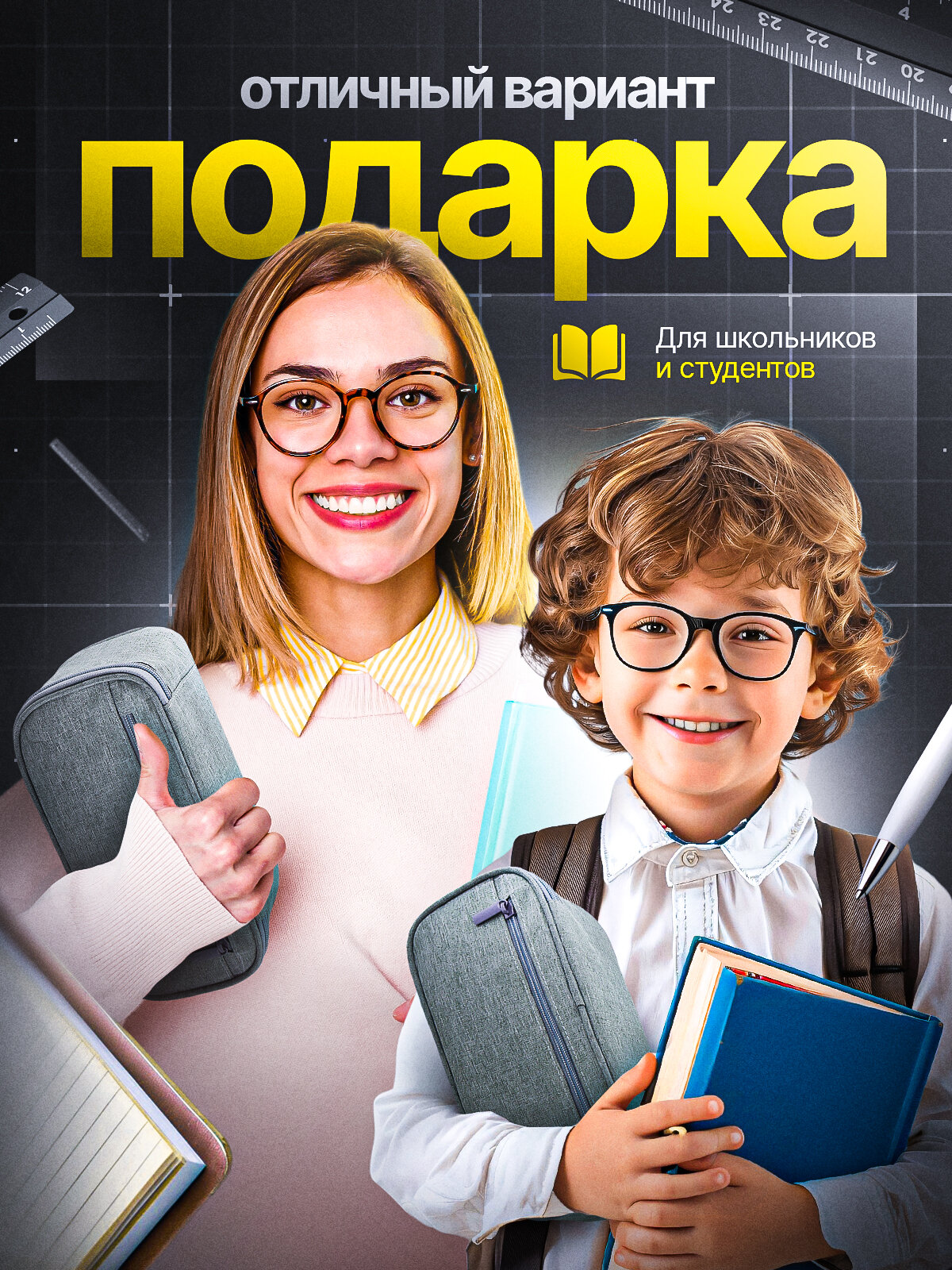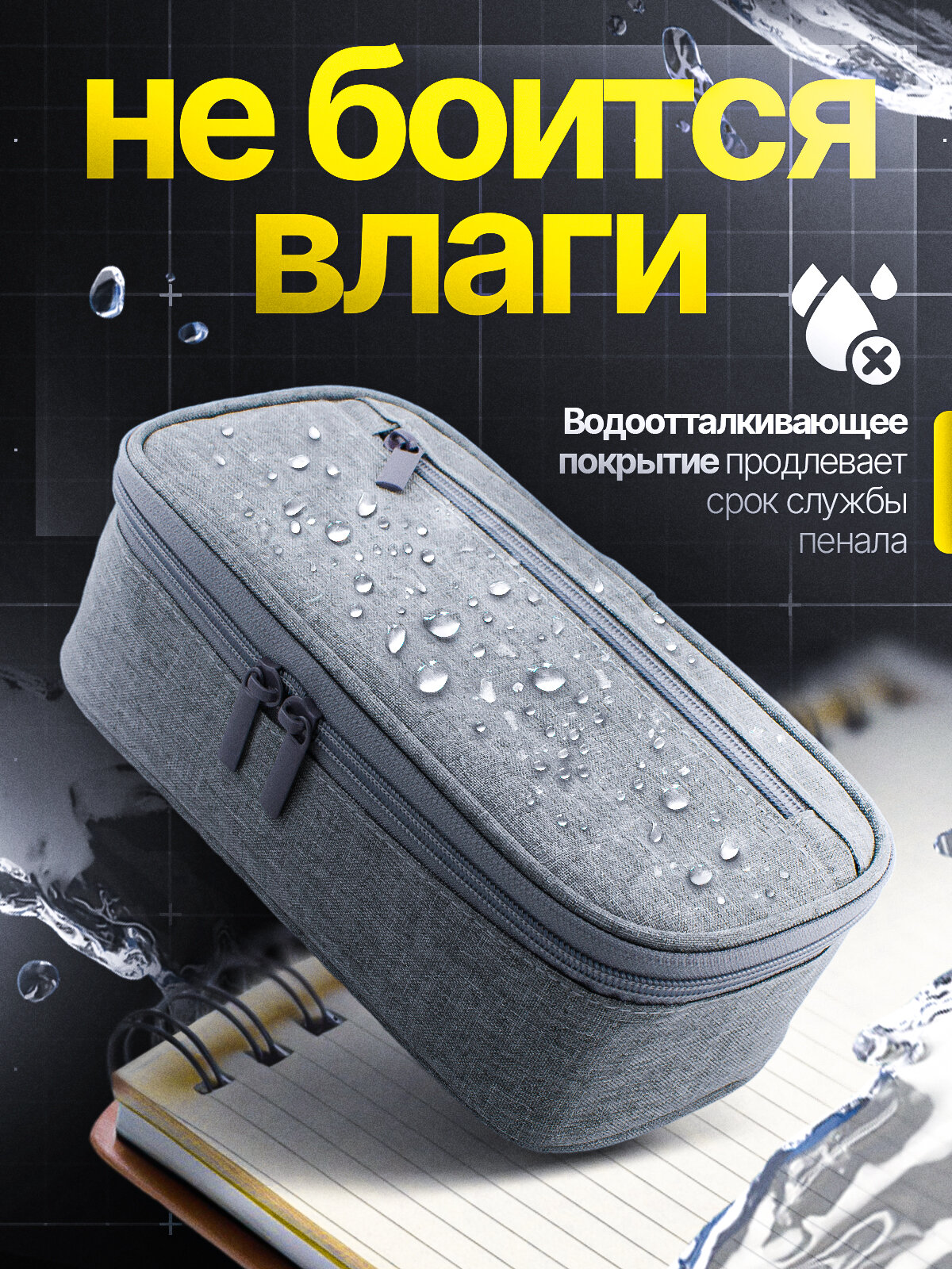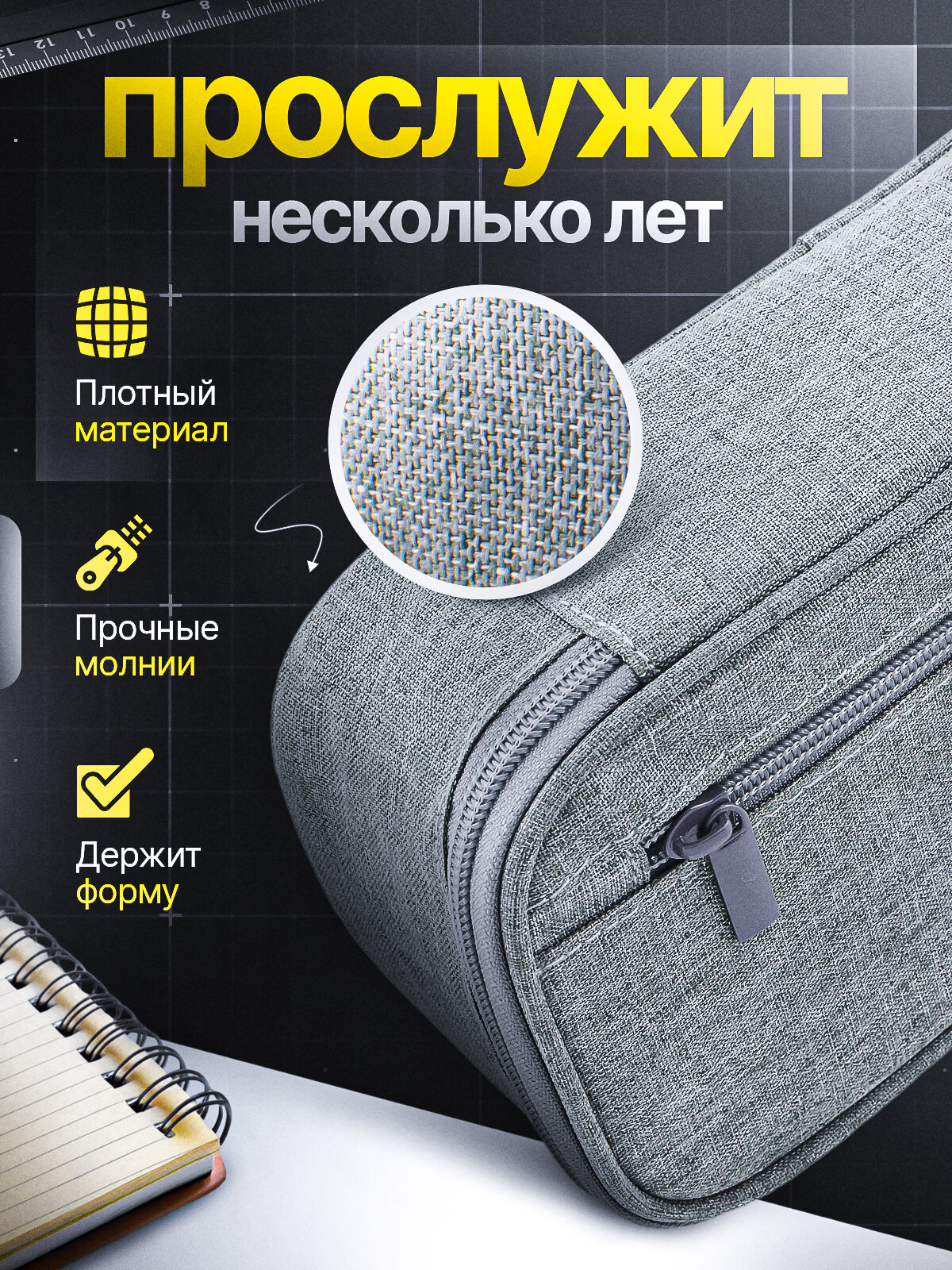Пенал школьный большой серый для канцелярии для мальчика, девочки в подарок ребенку, подростку в школу интересное: