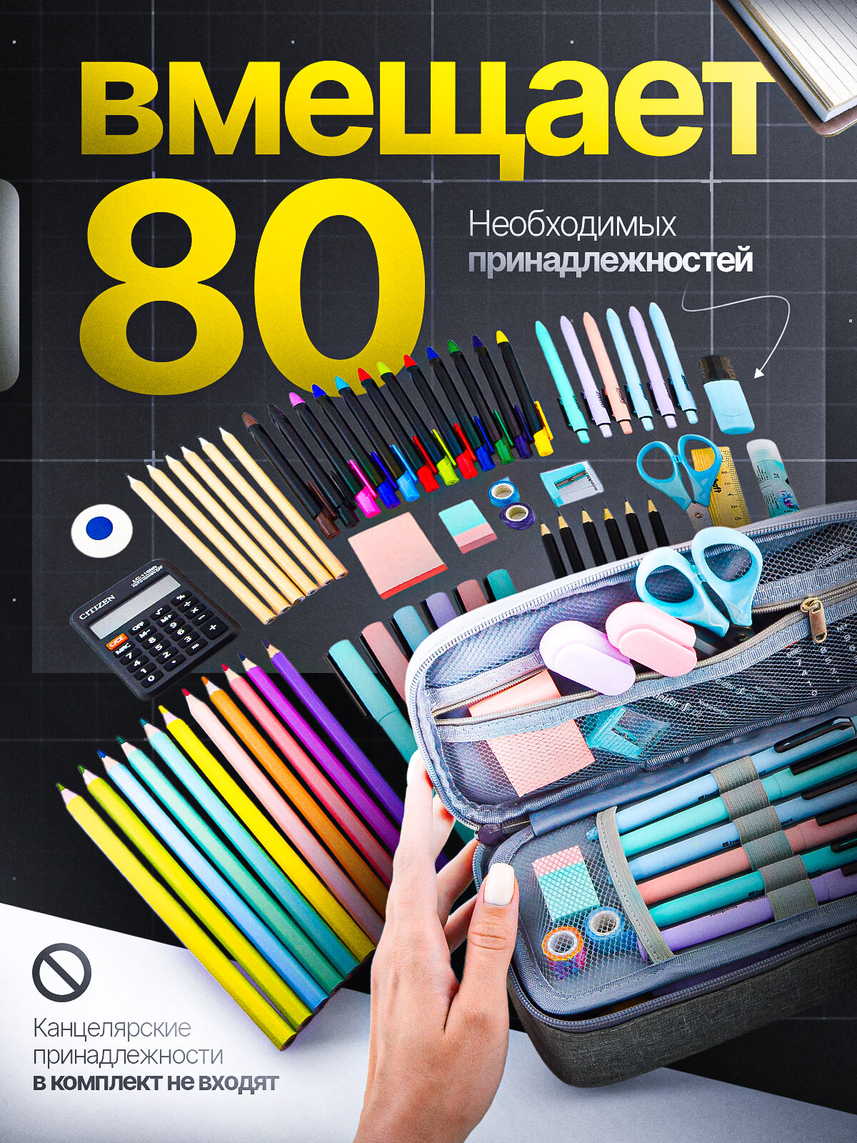 Купить Пенал школьный большой серый для канцелярии для мальчика, девочки в подарок ребенку, подростку в школу